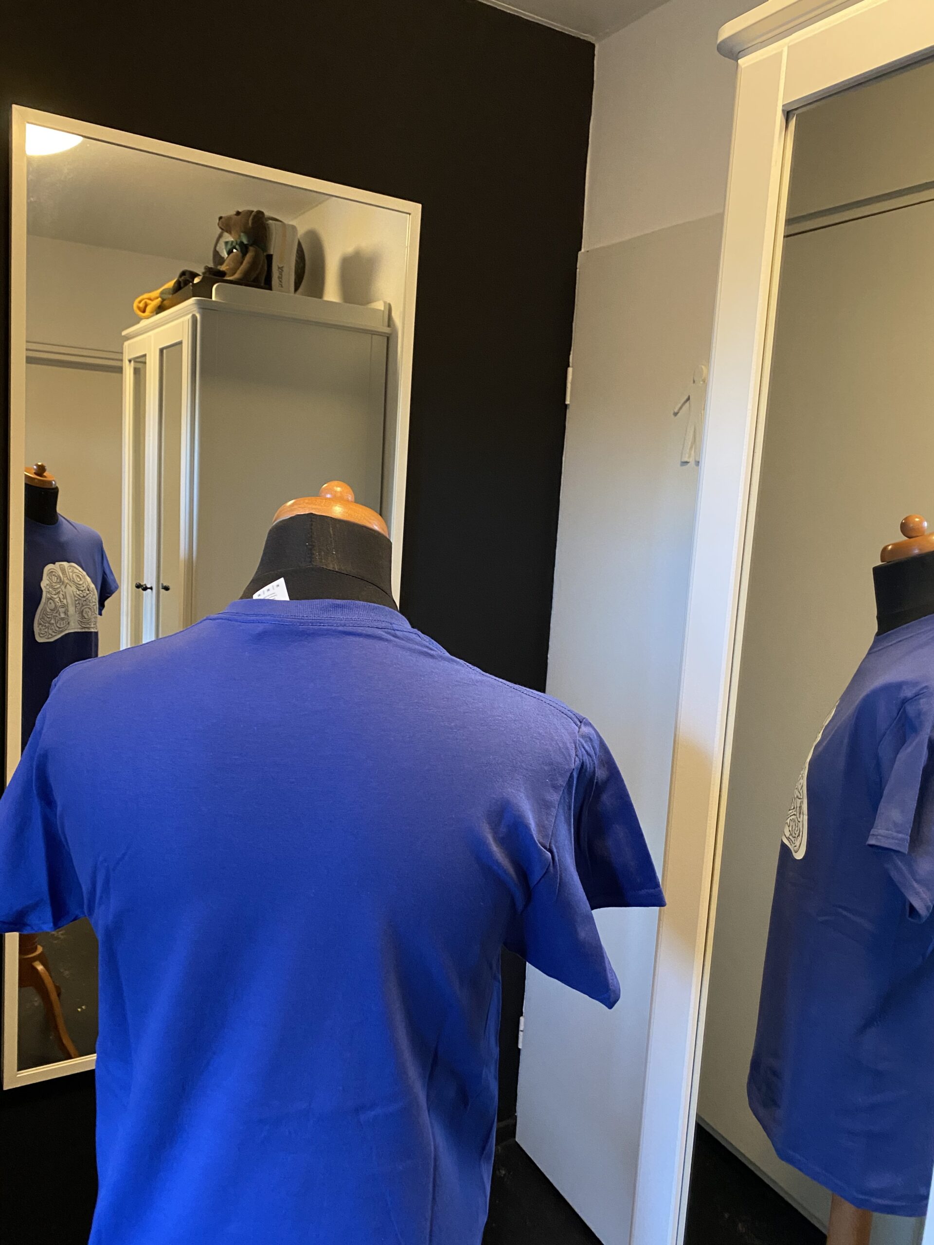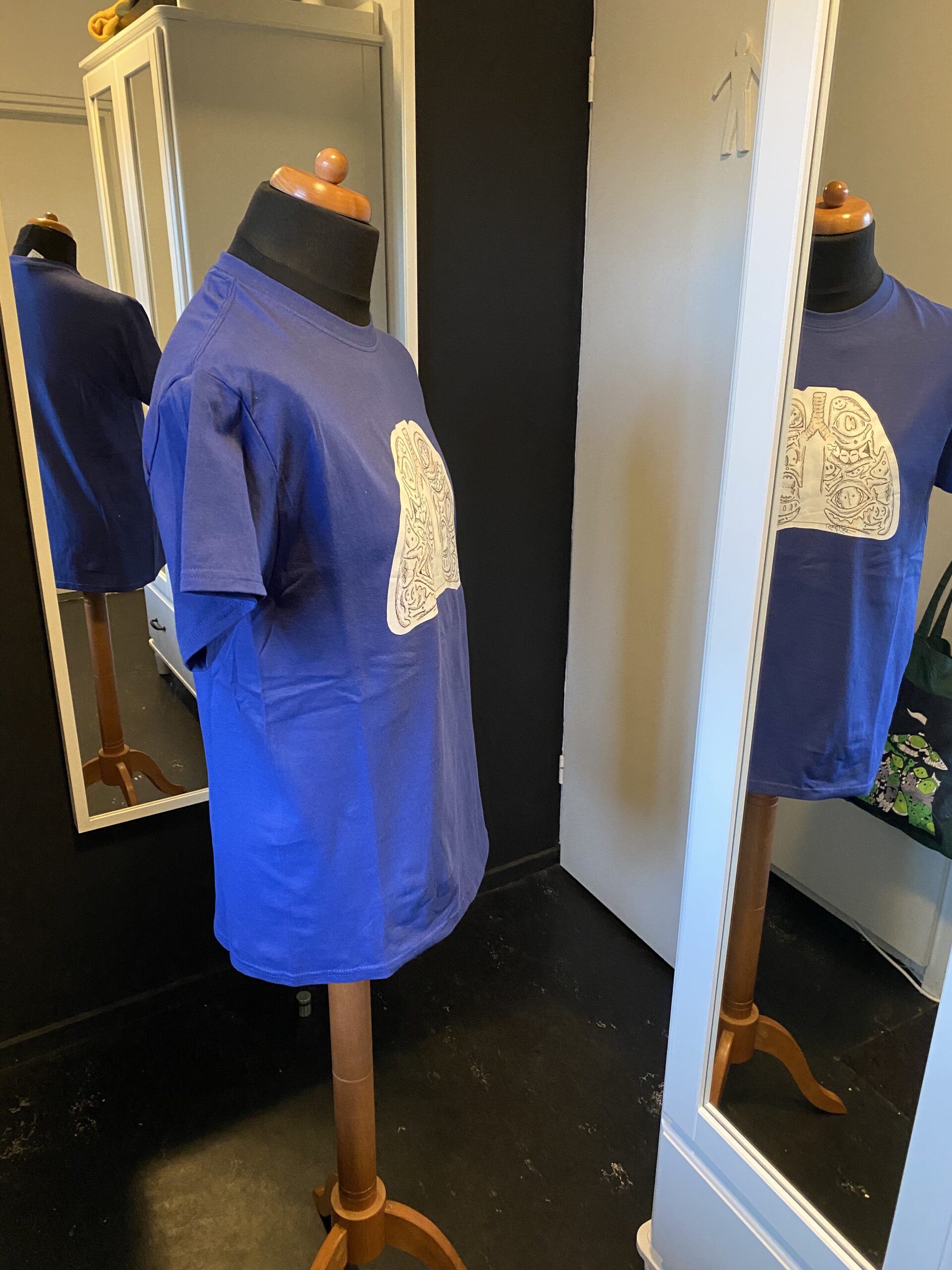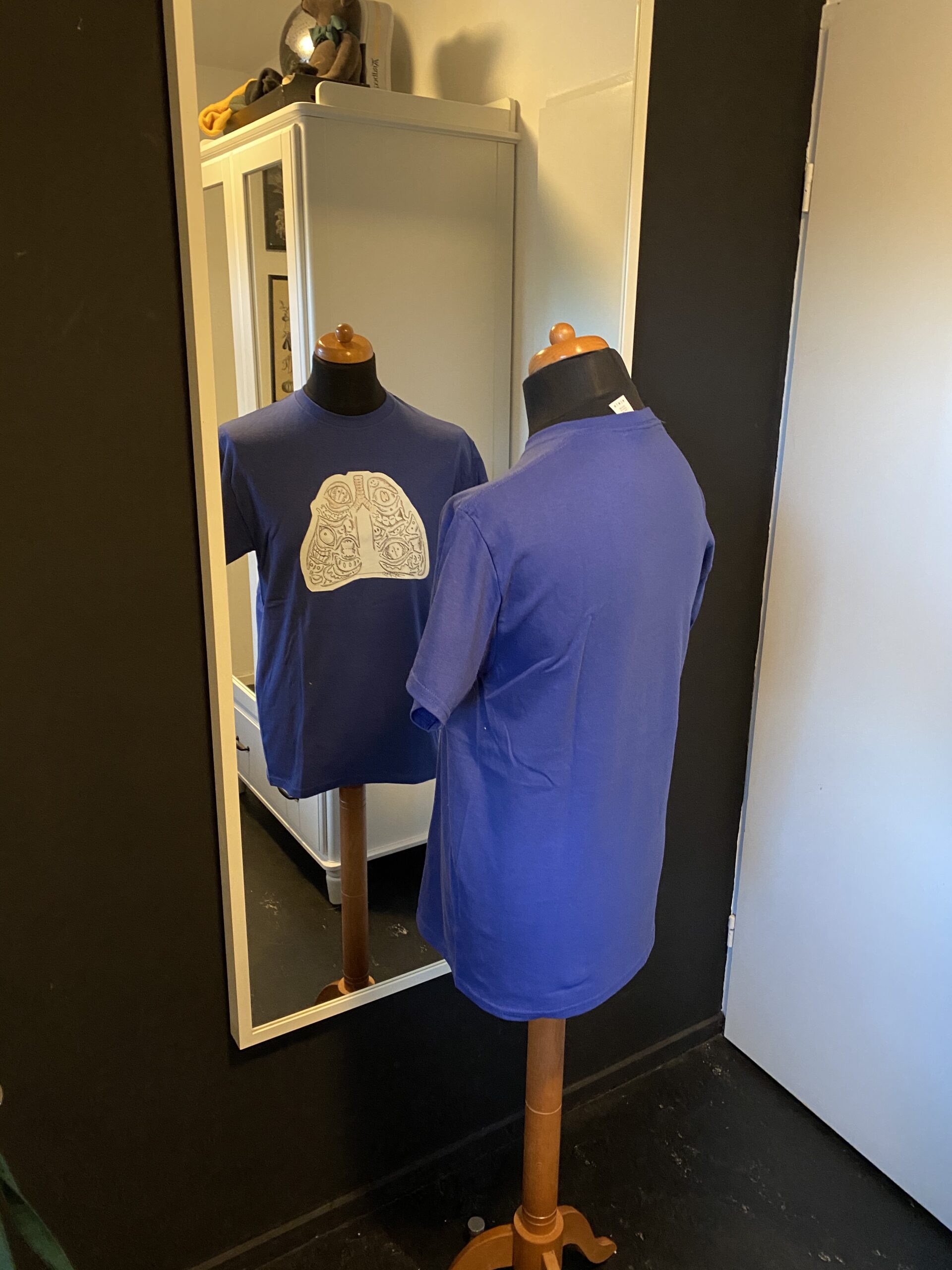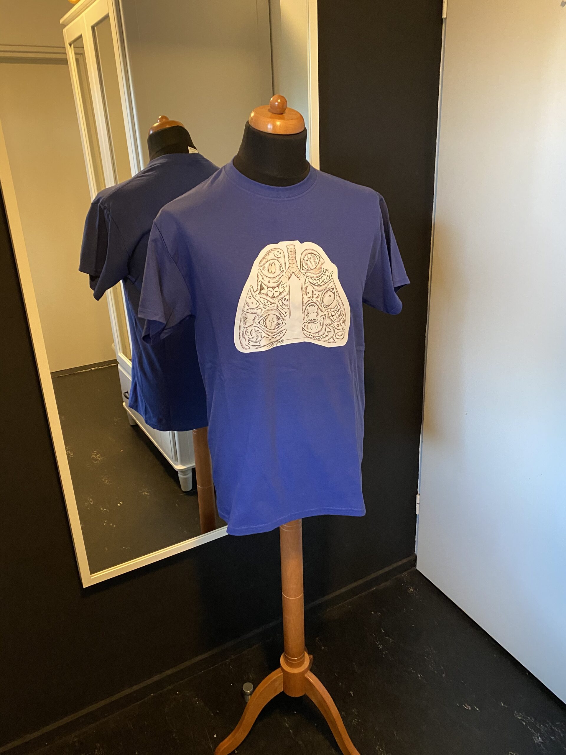 Shirt met een artistieke verbeelding van de longen op een anatomisch juiste plaats. Gecreëerd door de Nederlandse artiest Djethro van der Post. Geïnspireerd op oude medische boeken.