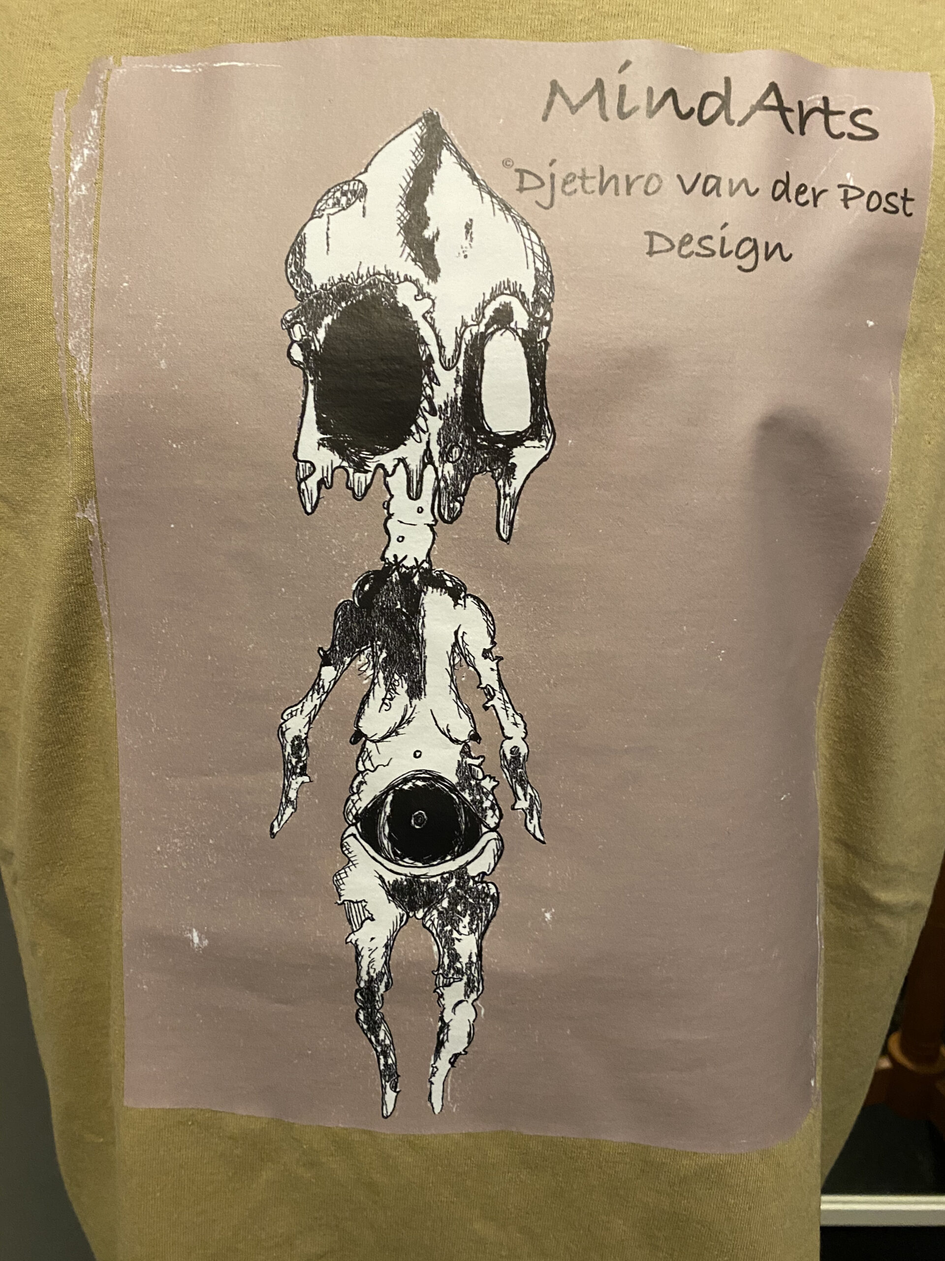 Djethro was inspired by the book, Promethean Horrors, classic tales of mad science. A piece of work by the British library, Tales of the weird. Especially de story’s crafted by H.P. Lovecraft spoke to him. He translated the story’s into Art representations in his recognisable specific style.