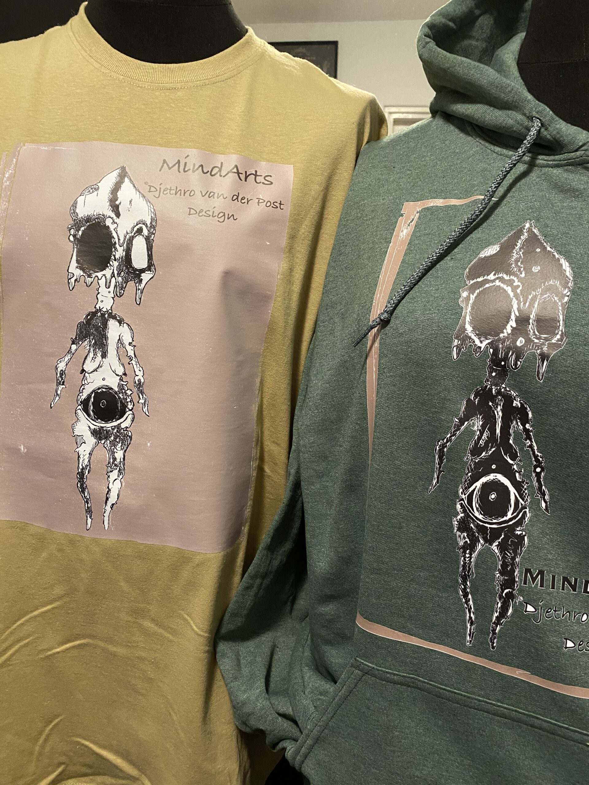 Djethro haalde zijn inspiratie uit het boek Promethean Horrors, classic tales of mad science. Een werk van de British library, tales of the weird. Met name de verhalen geschreven door H.P. Lovecraft spreken hem aan. Hij vertaalde de werken naar Art voorstellingen in zijn herkenbare specifieke stijl.