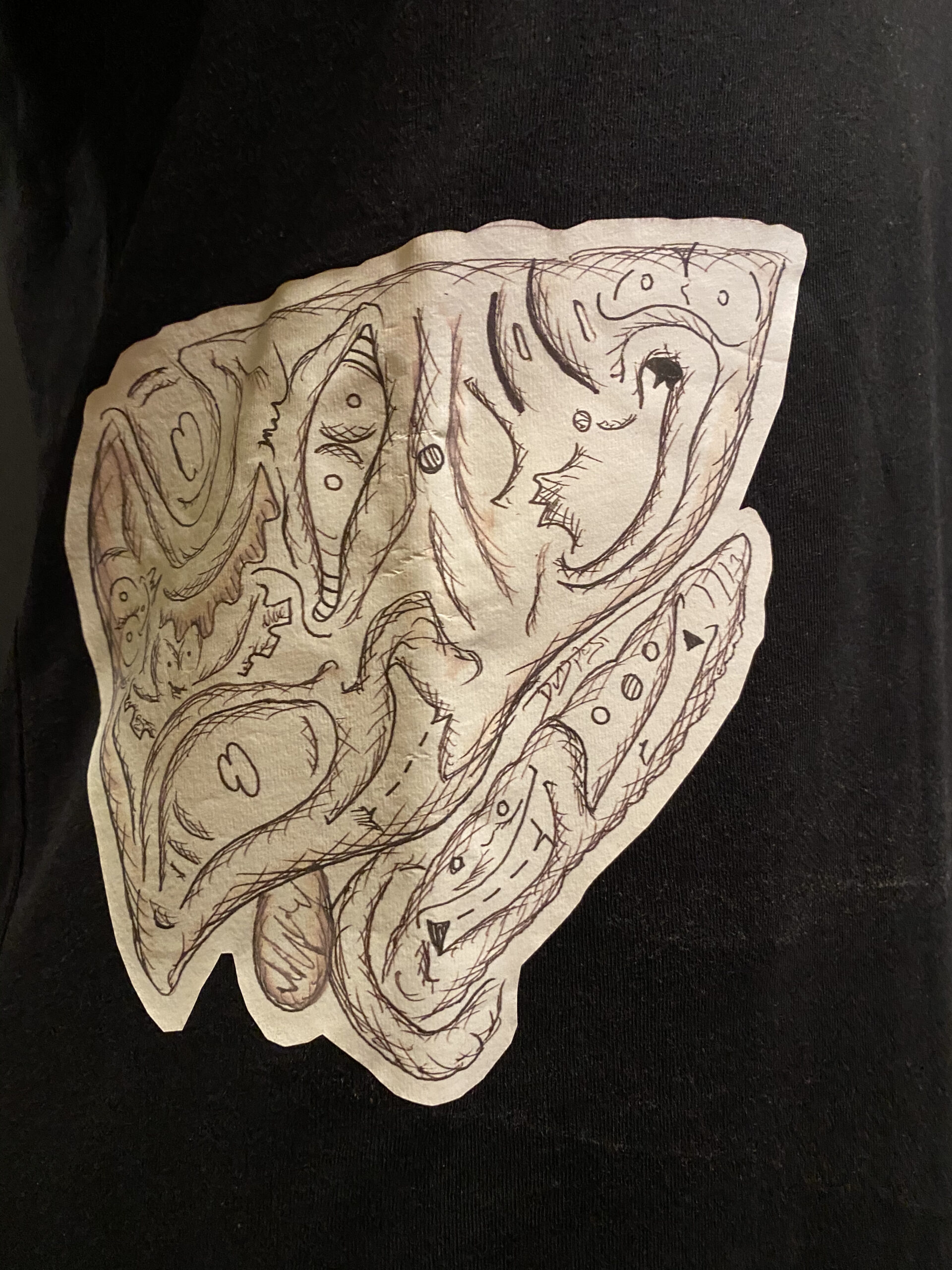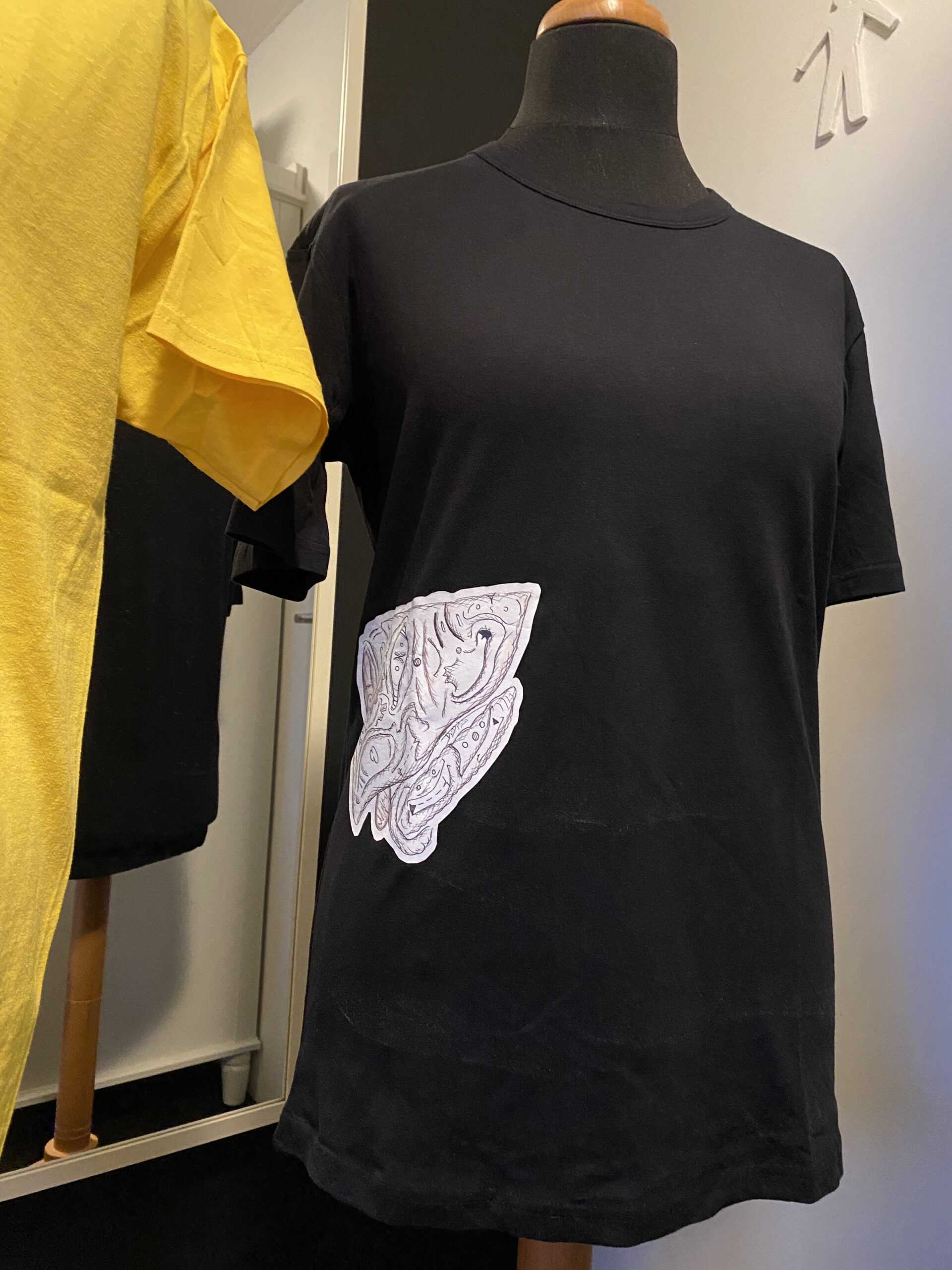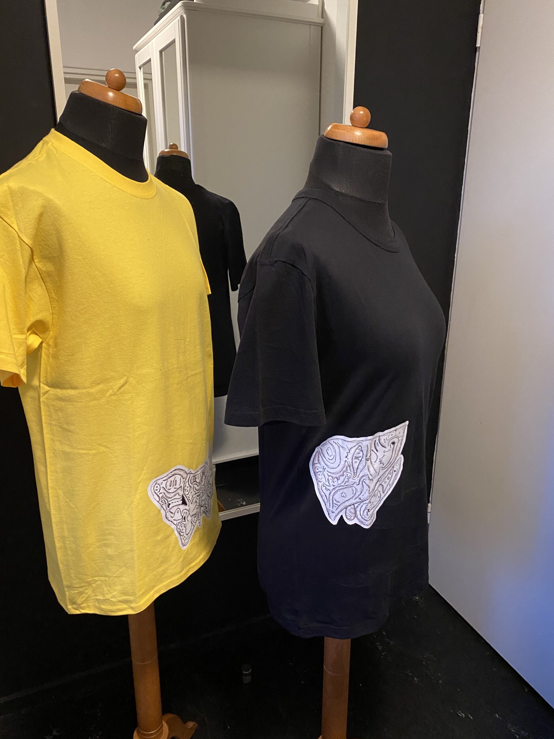 Shirt met een artistieke verbeelding van de lever op een anatomisch juiste plaats. Gecreëerd door de Nederlandse artiest Djethro van der Post. Geïnspireerd op oude medische boeken.