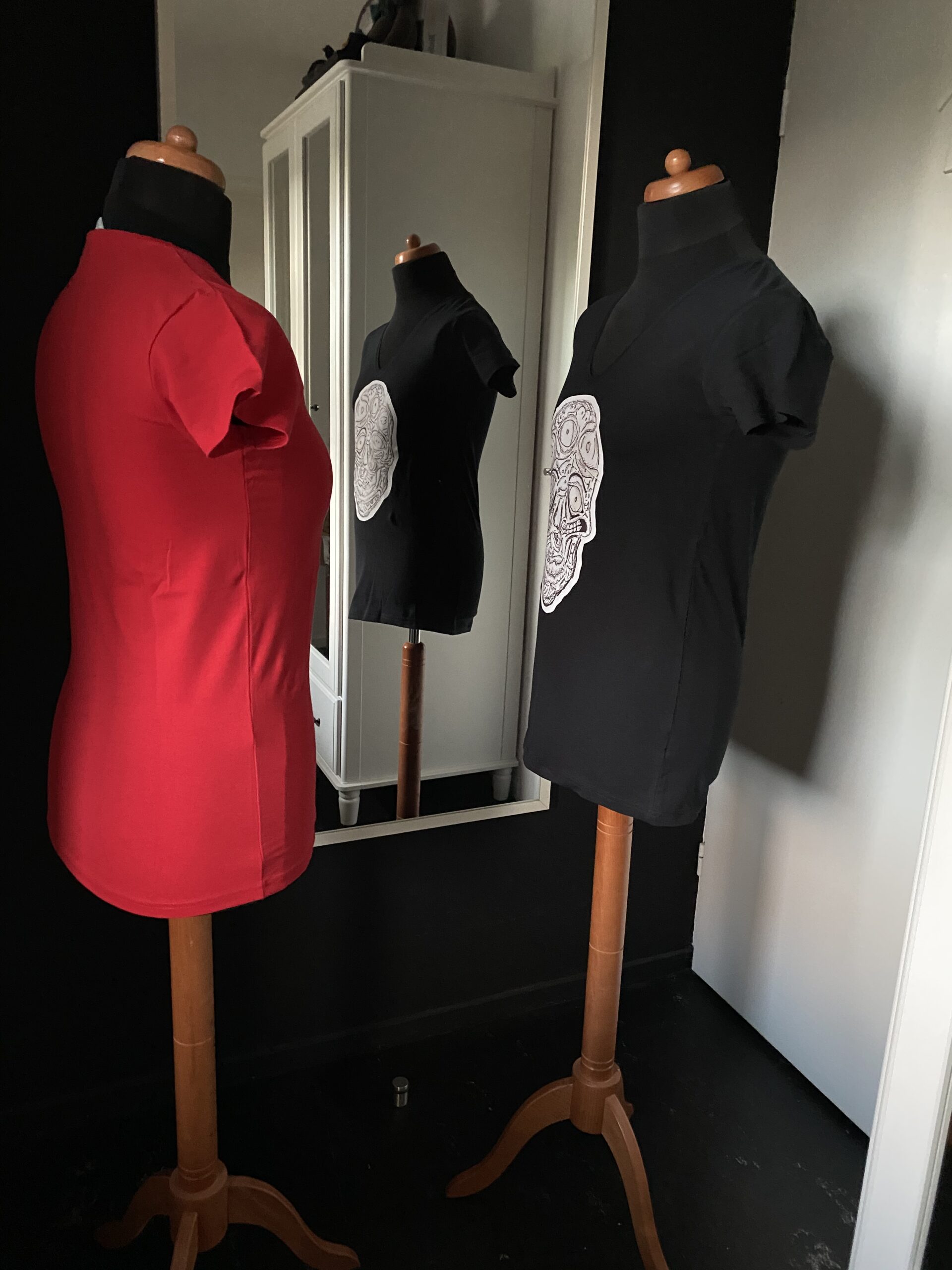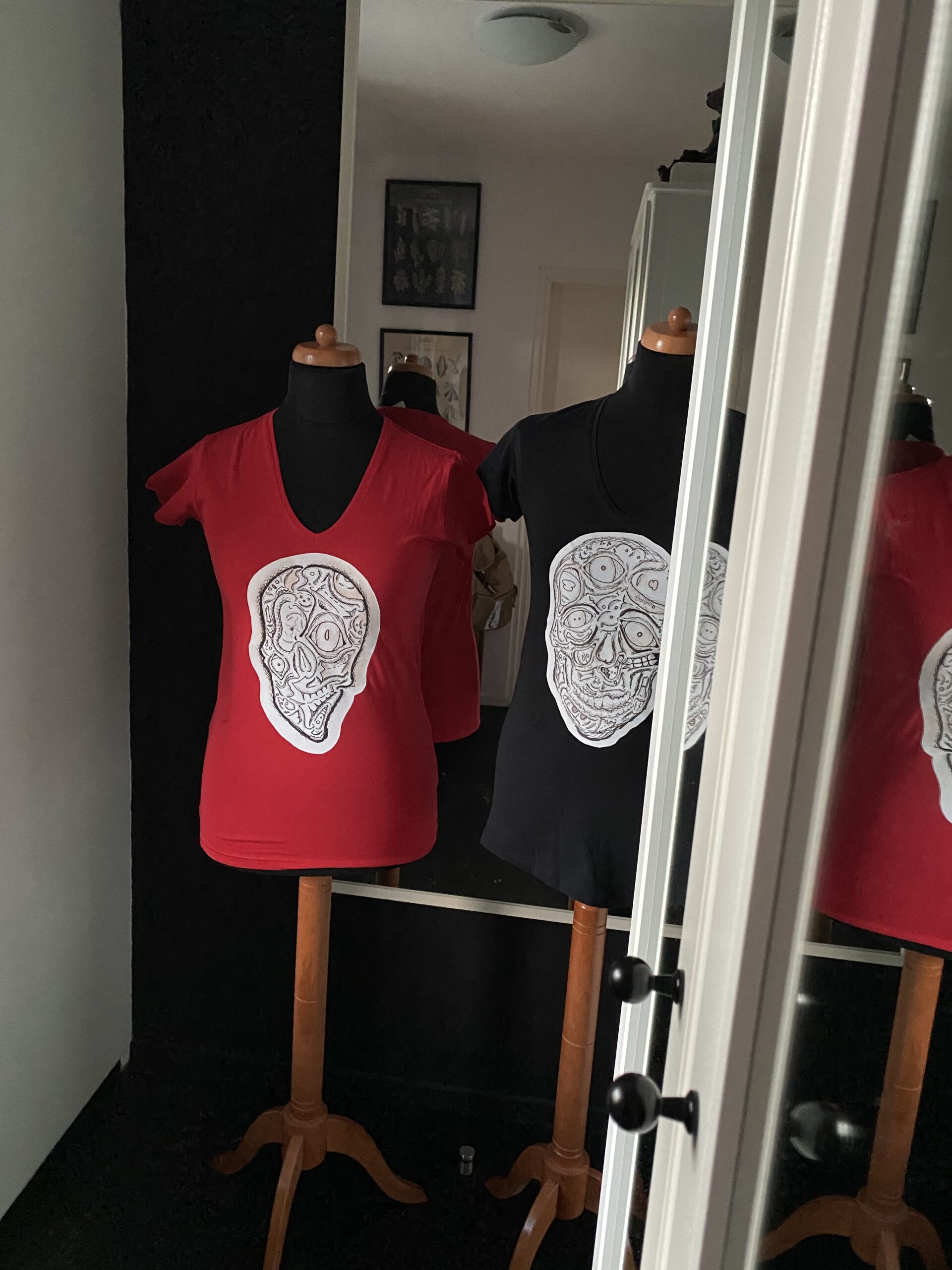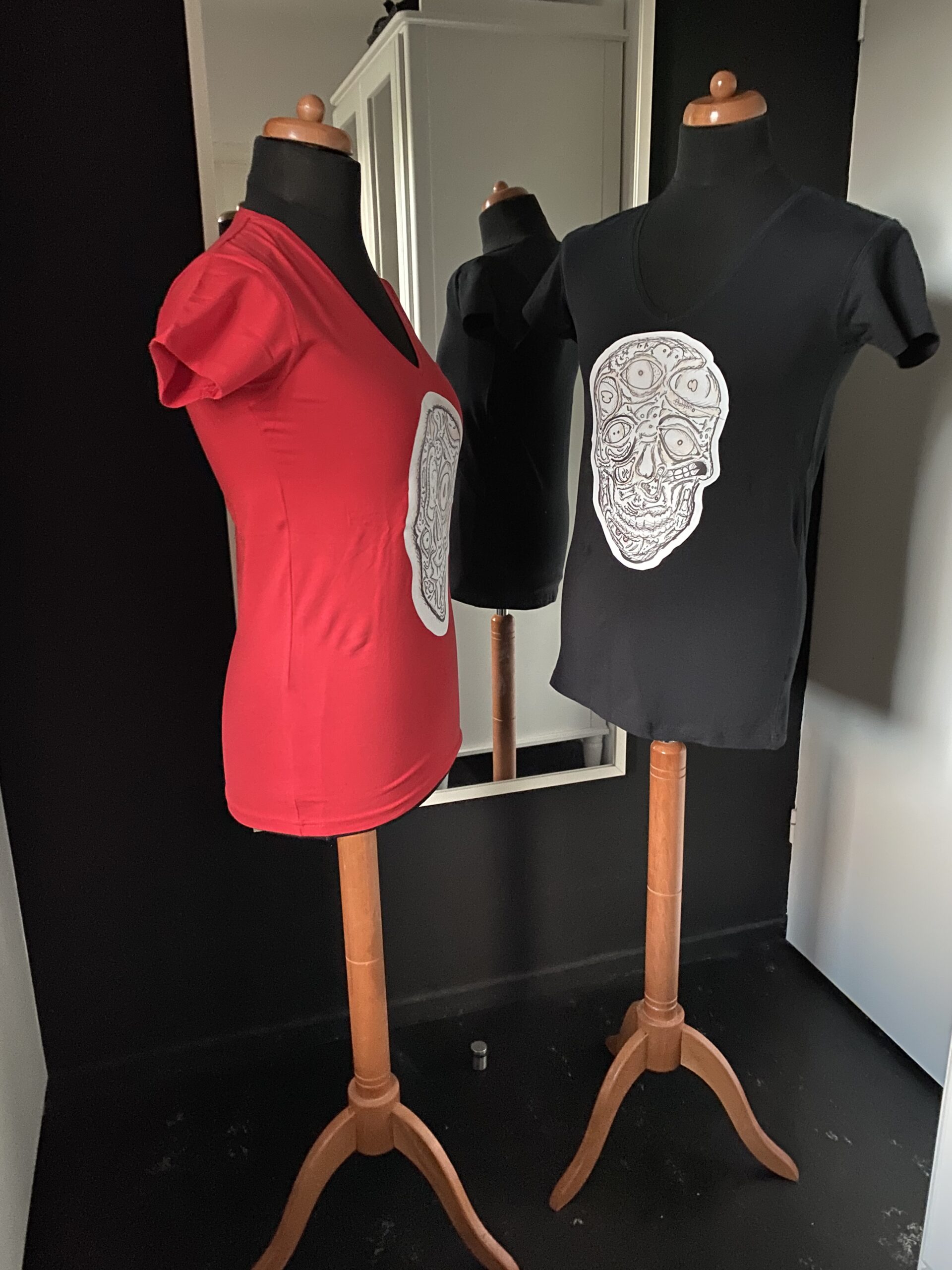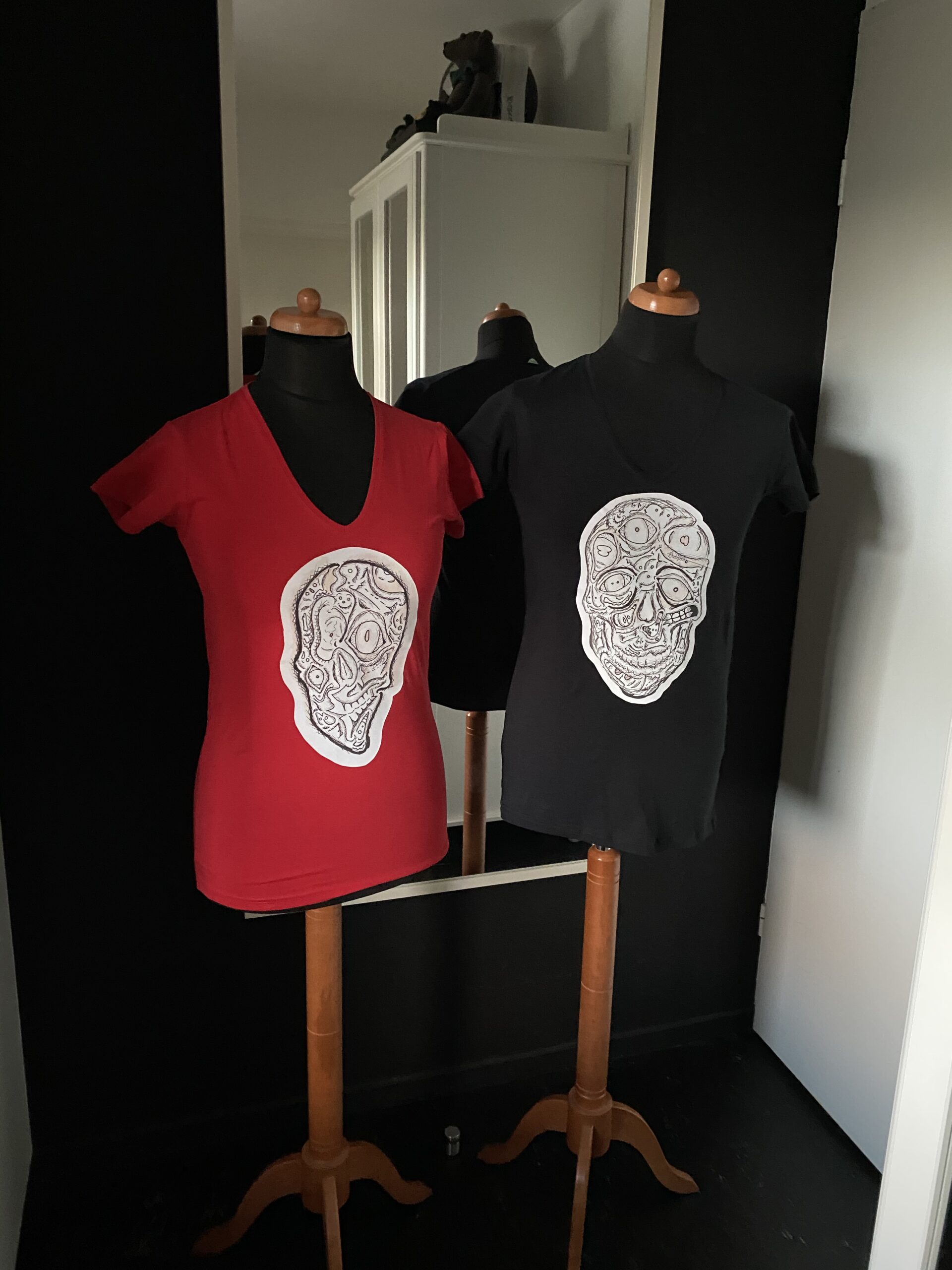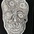 A skull design made by the artist Djethro van der Post. This is a “ en face” skull shirt. You’re looking at the fantasy skull at the front. Wherever you look , everywhere’s is something different to look at.. also this face is a little out of order, so you’ll turn to look on every side t make things right. Fantasy never seize to amaze me., it’s breathtaking. It’ll benefit you all your life.