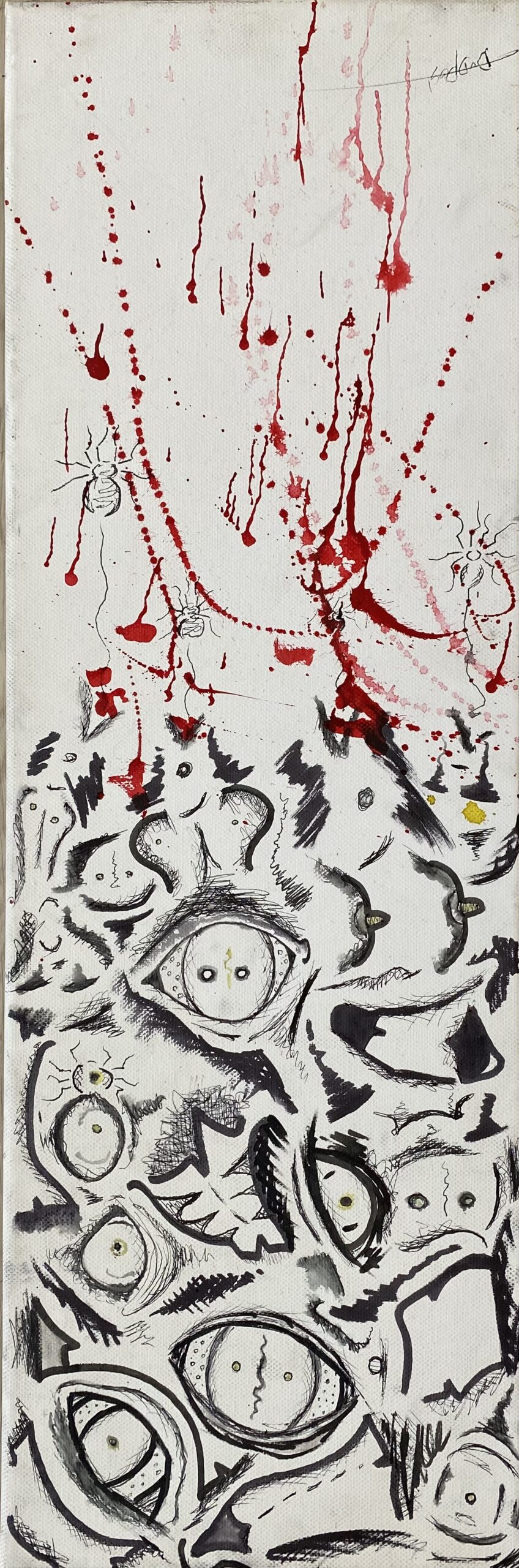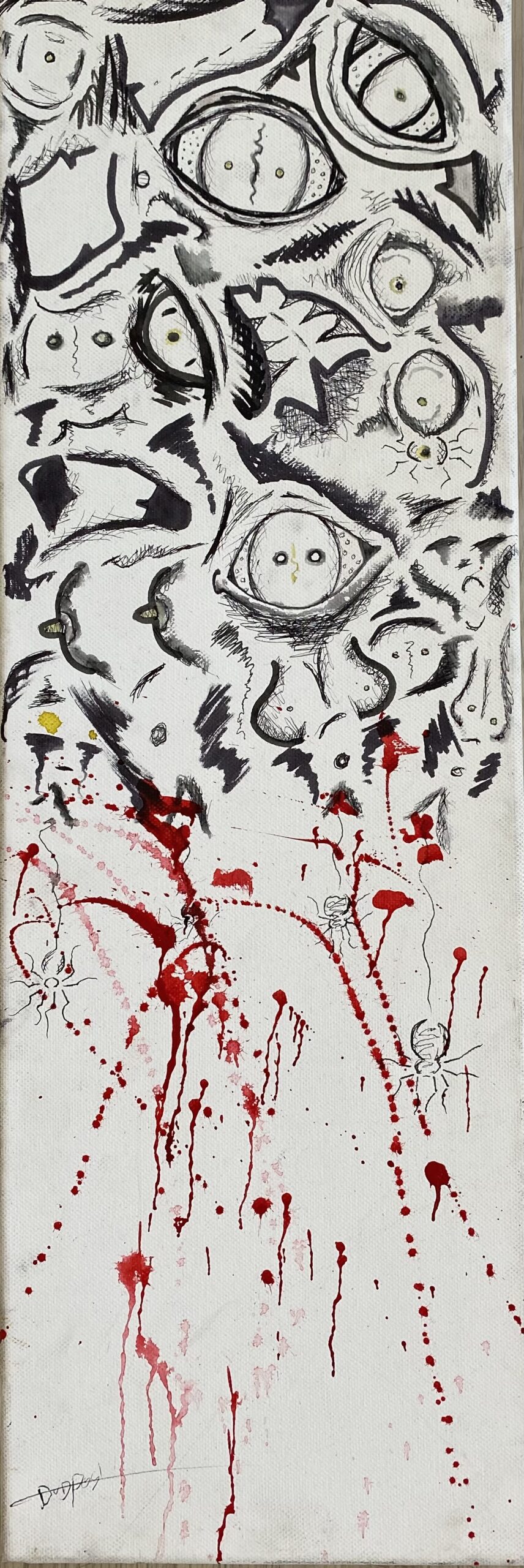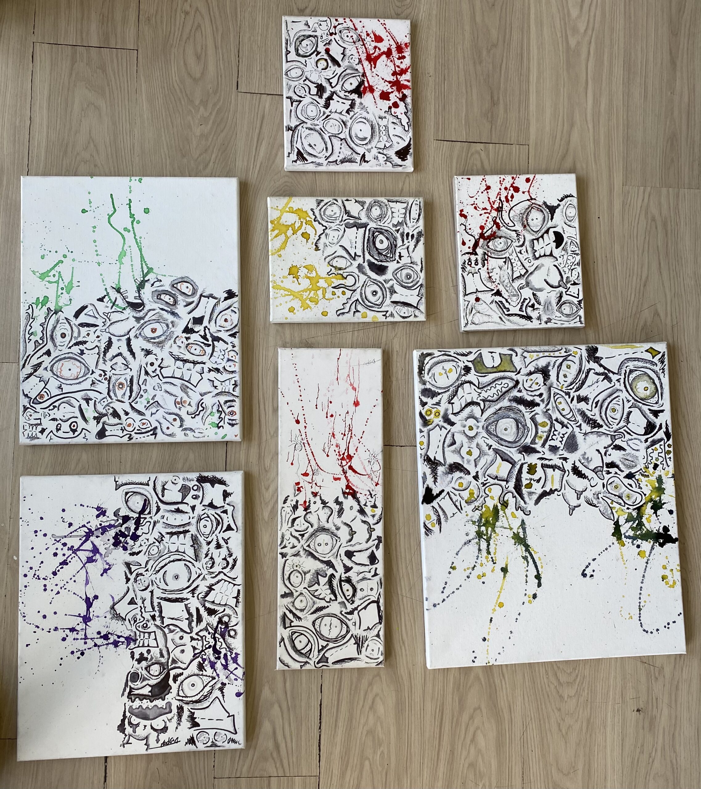 Kunstwerk van de artiest Djethro van der Post. Het opgespannen linnen doek