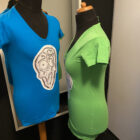 This blue t-shirt is made of 95 % Cotton and 5 % elasthaan. It’s a printed Djethro van der Post design. In size L.