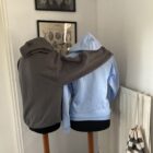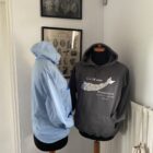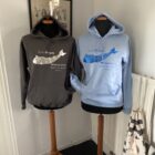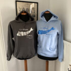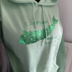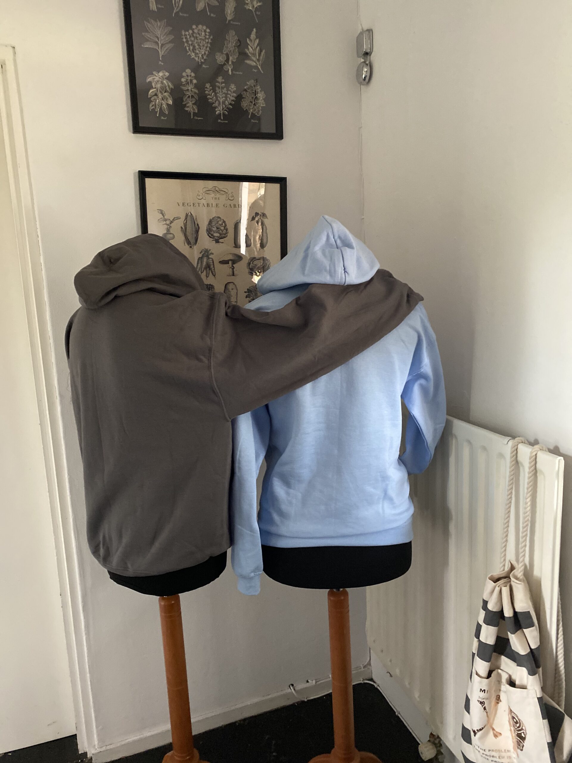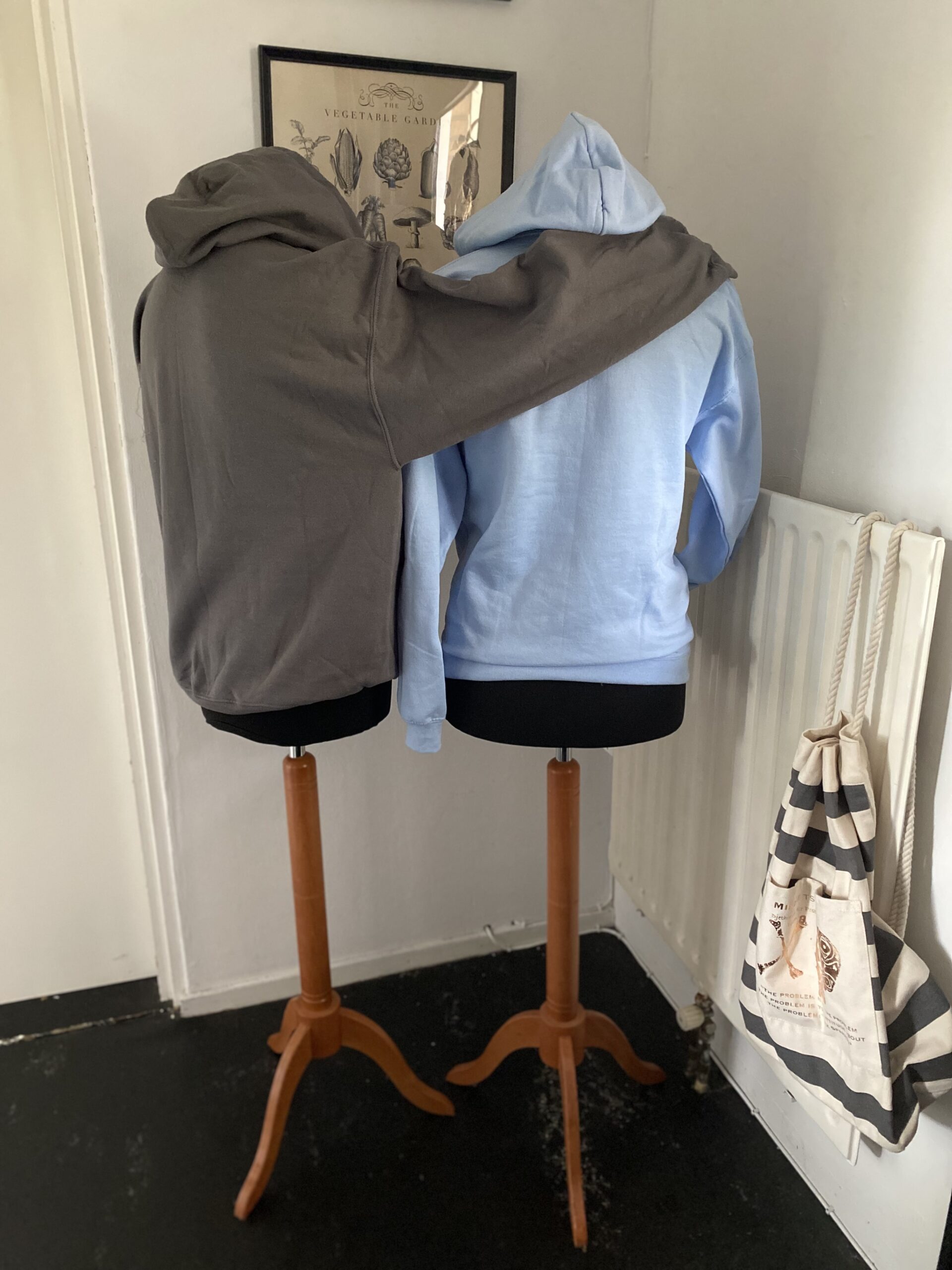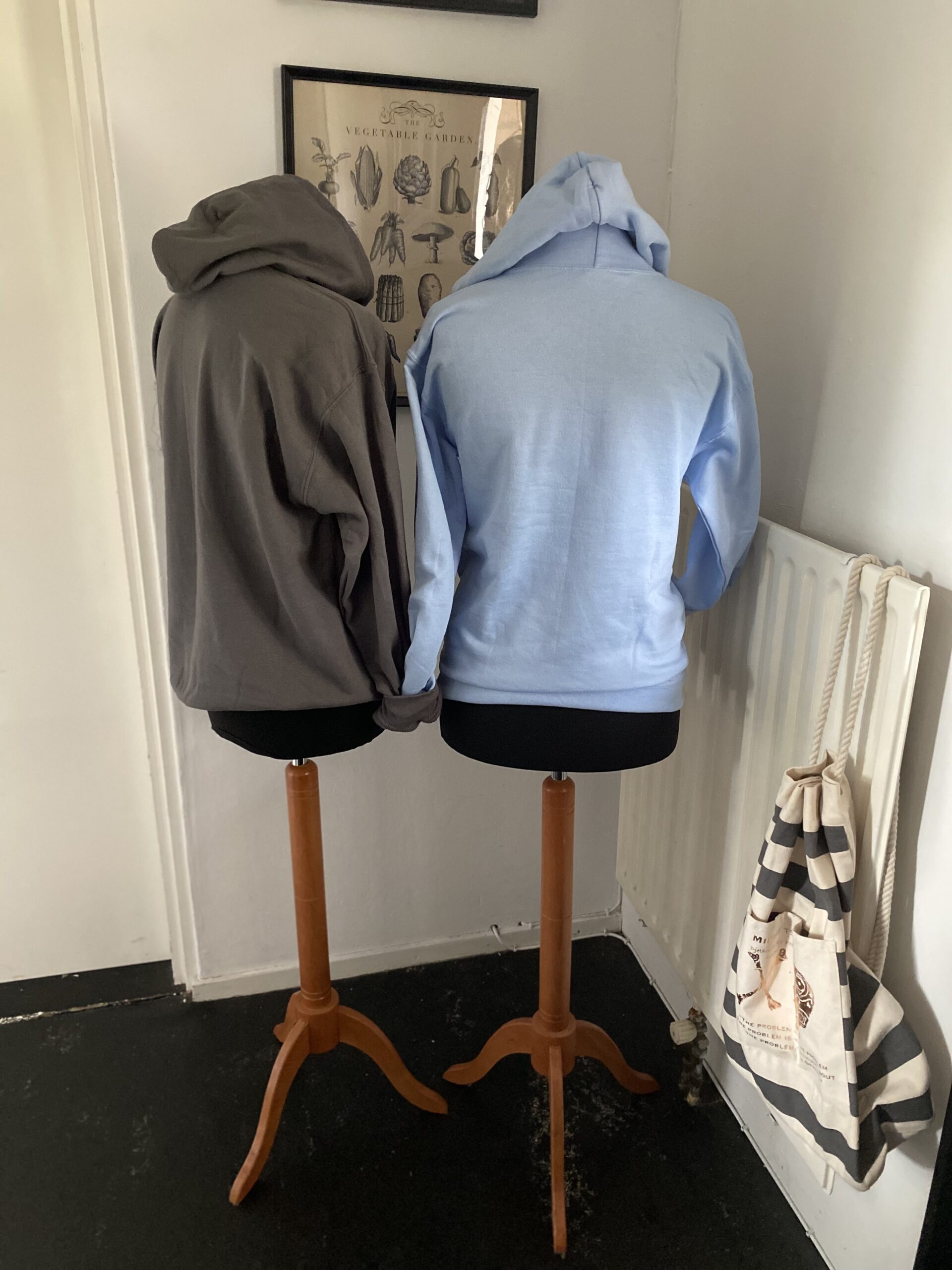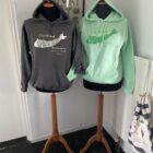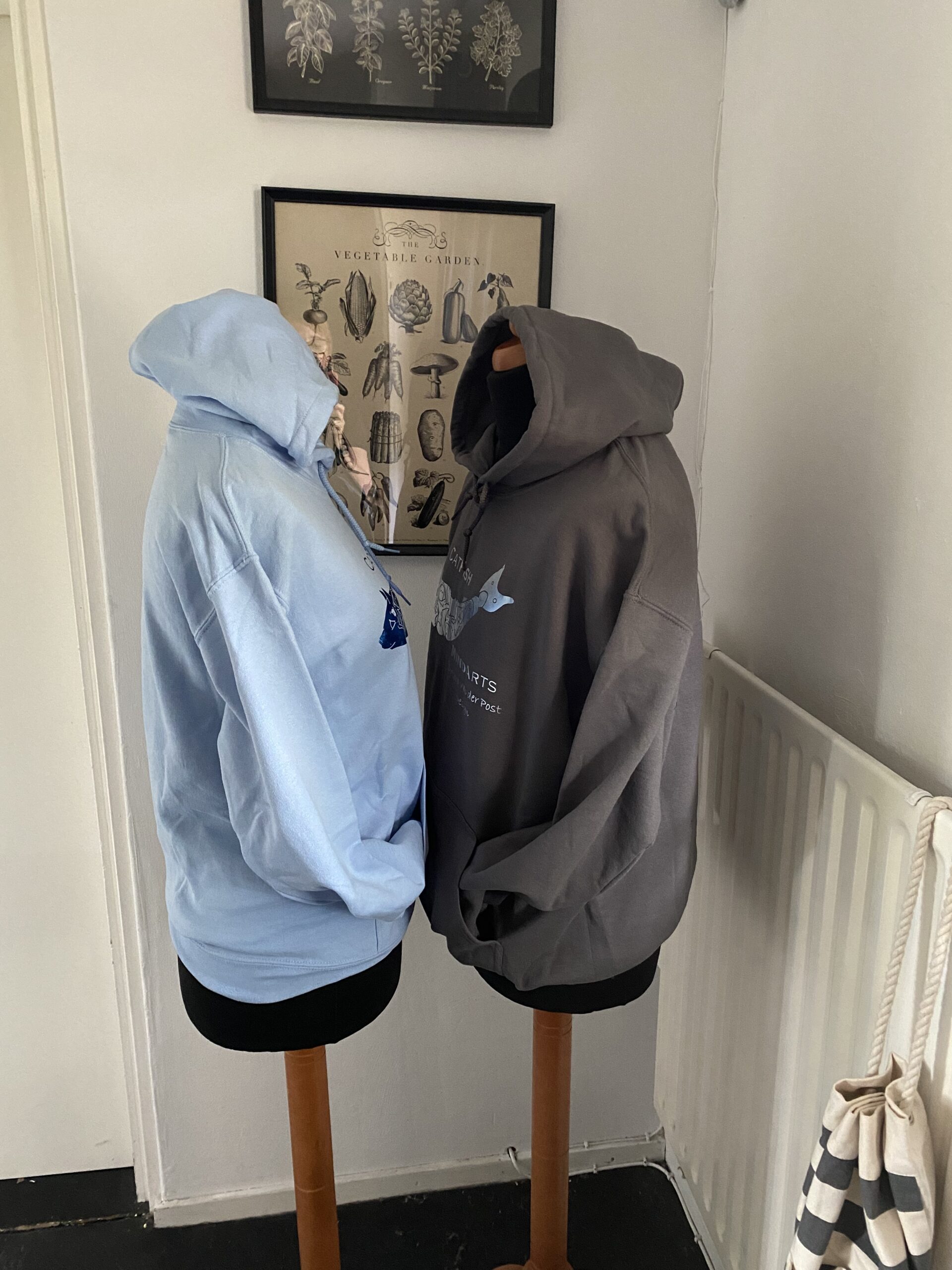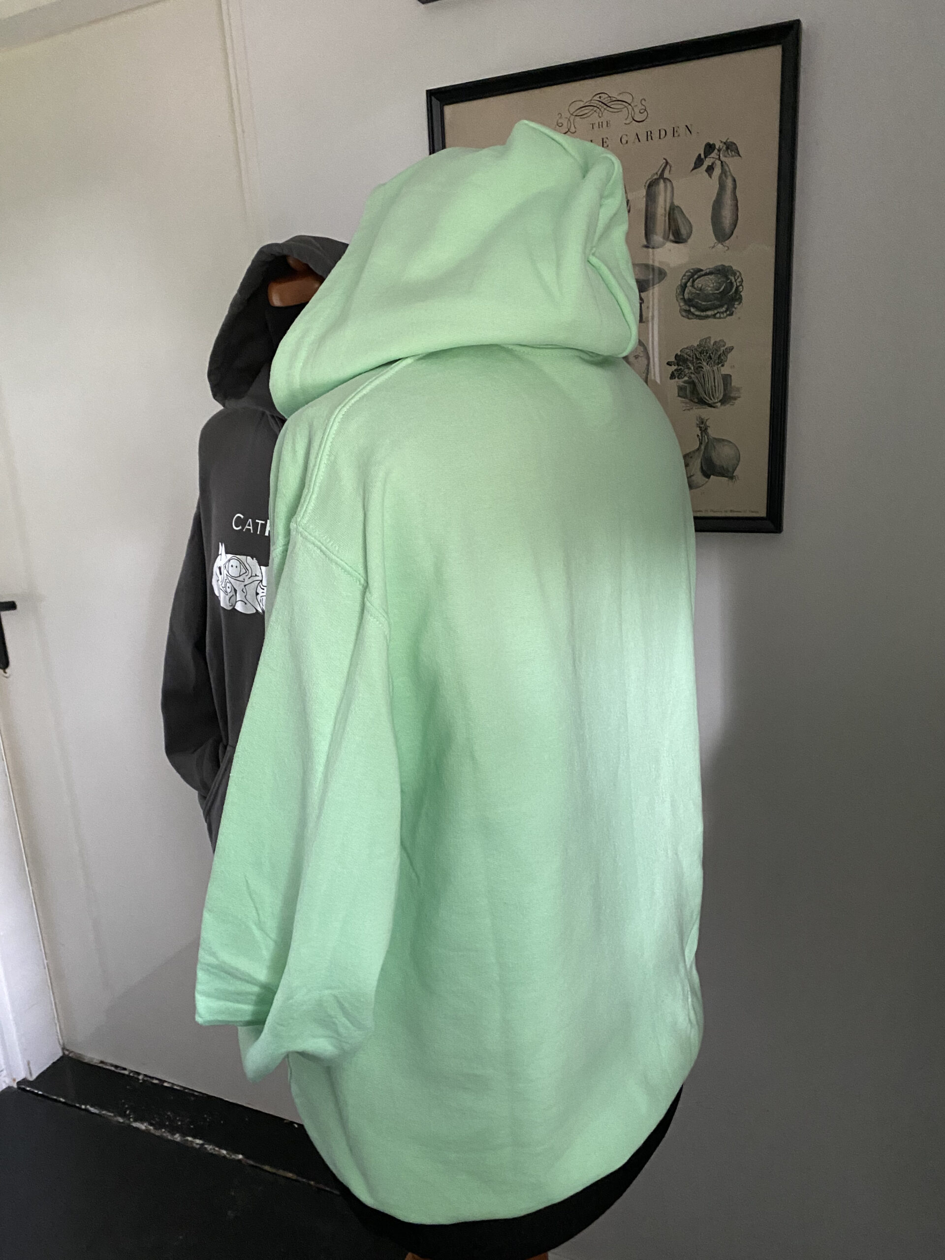 Cotton long sleeve Hoodie. Attainable in Blue size S, Green size M.