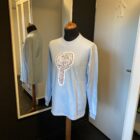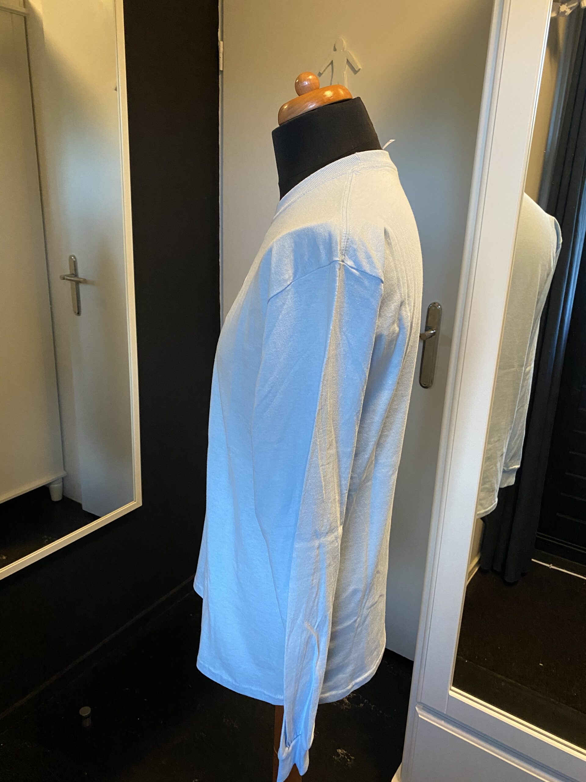 Een licht blauw shirt met een super duper relaxed suikerspin print op de voorkant. De Nederlandse artiest Djethro van der Post heeft het design hiervoor gemaakt.