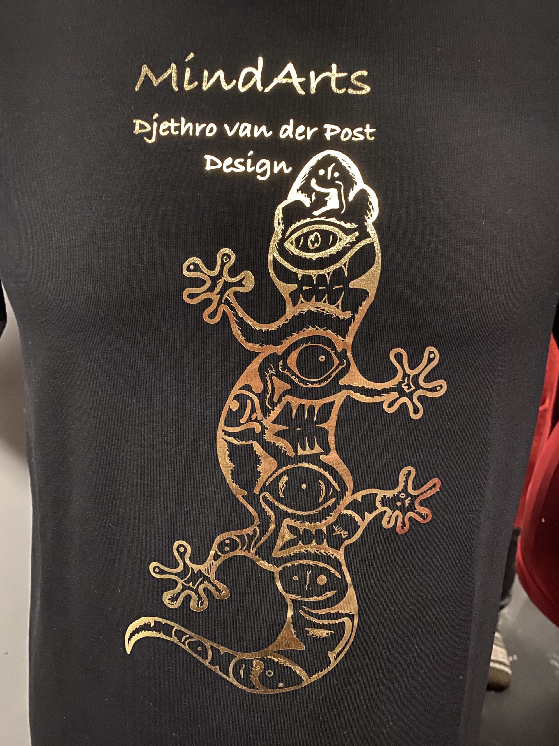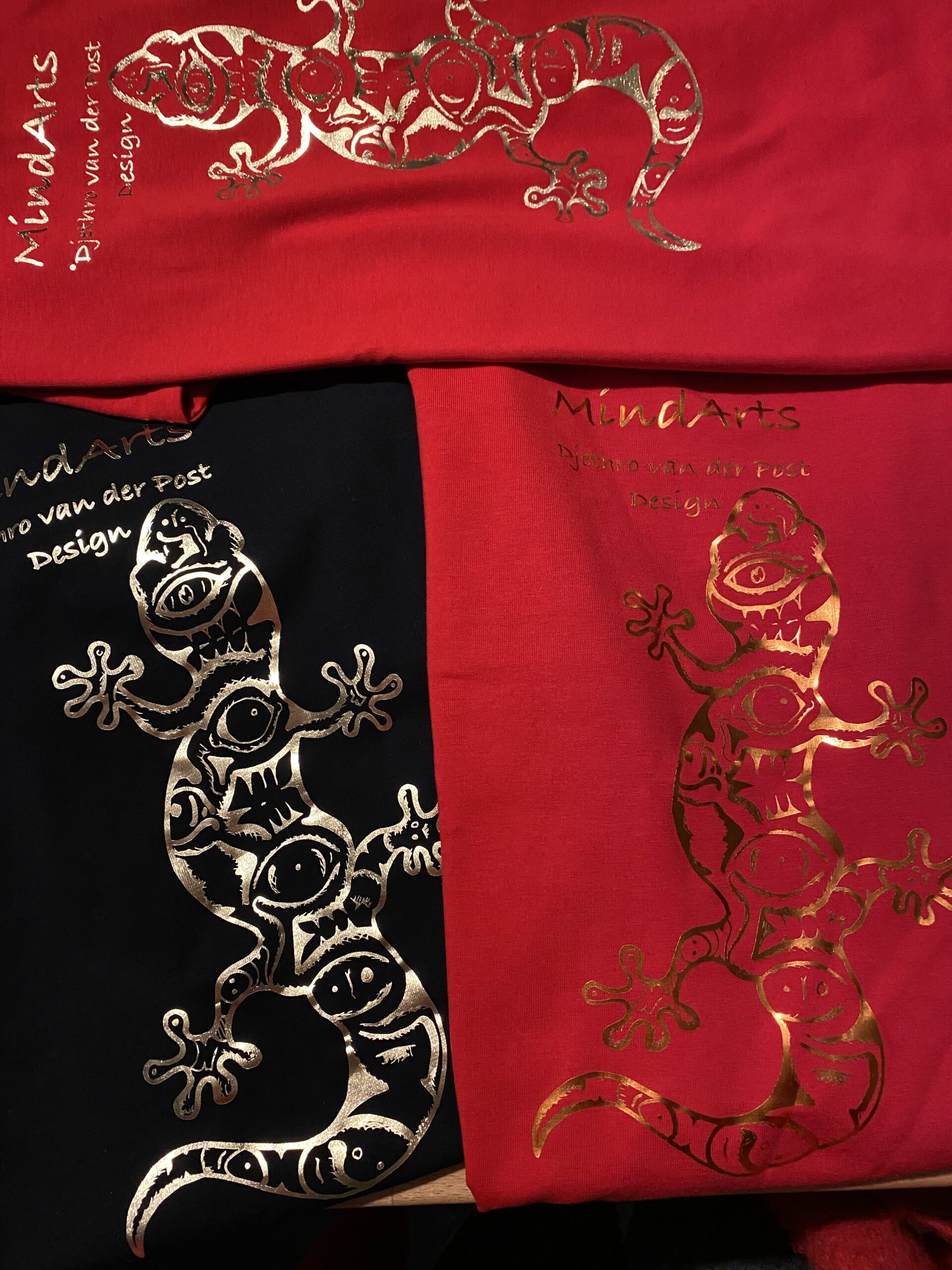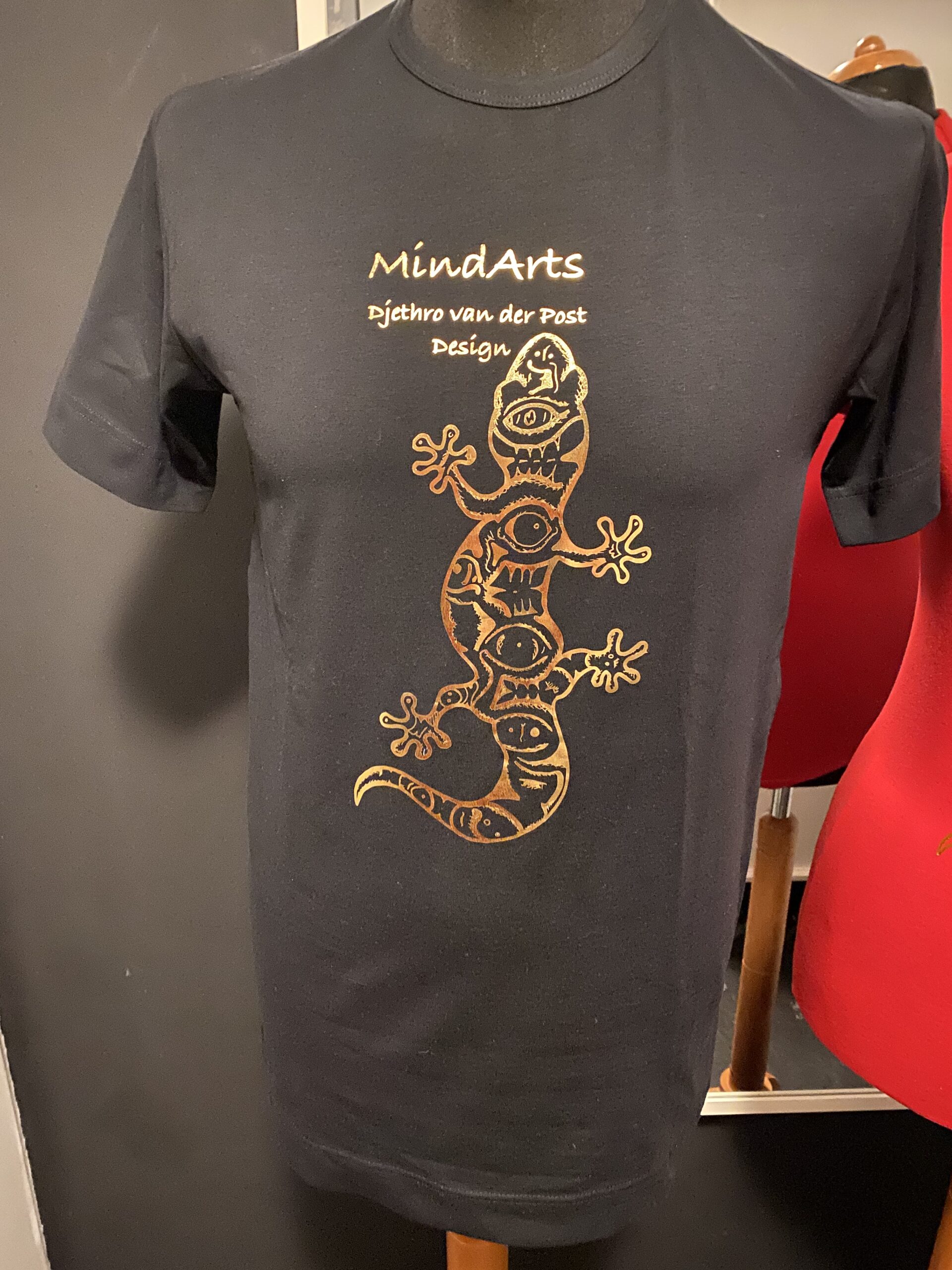 Het Gekko shirt. Een uniek Djethro van der Post design in de herkenbare stijl. De natuur is een grote inspiratie bron voor deze Nederlandse artiest.
