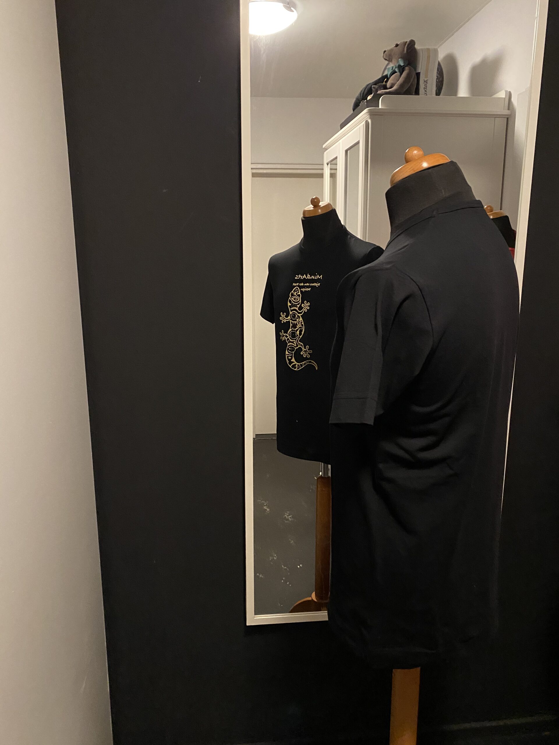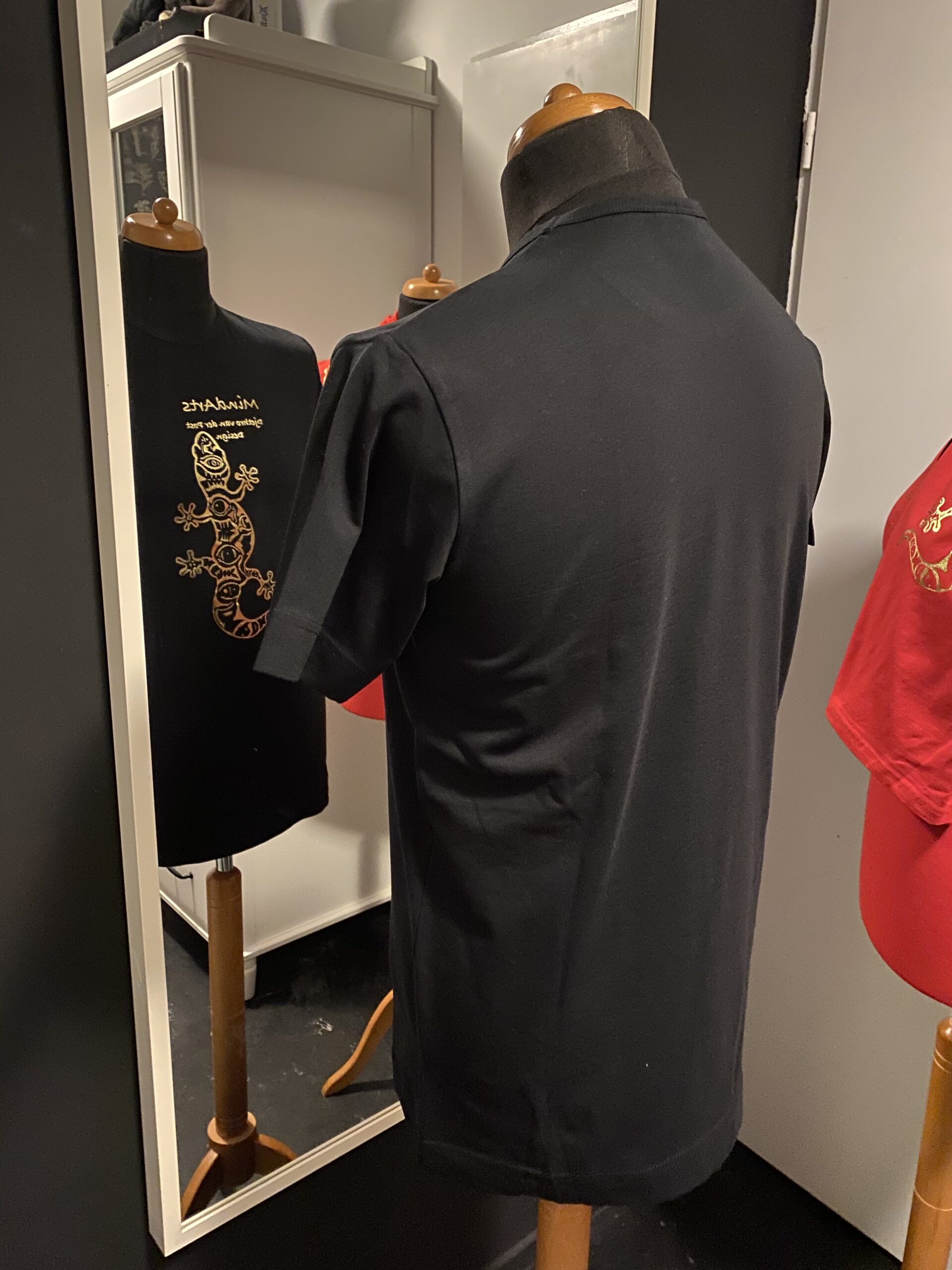 A Gekko-shirt. A Unique and rather recognisable Djethro van der Post design. Nature is very inspiring for this Dutch artist.