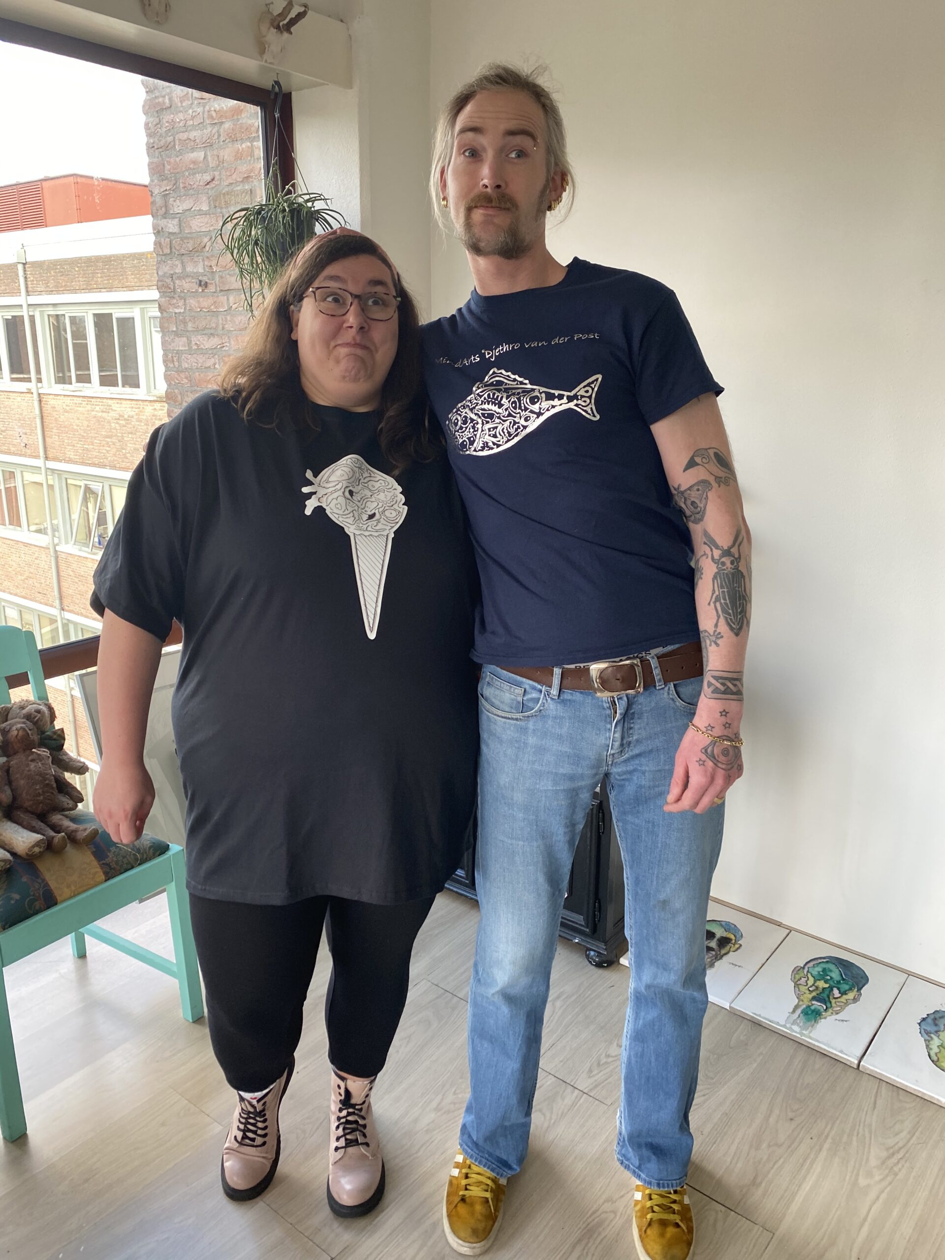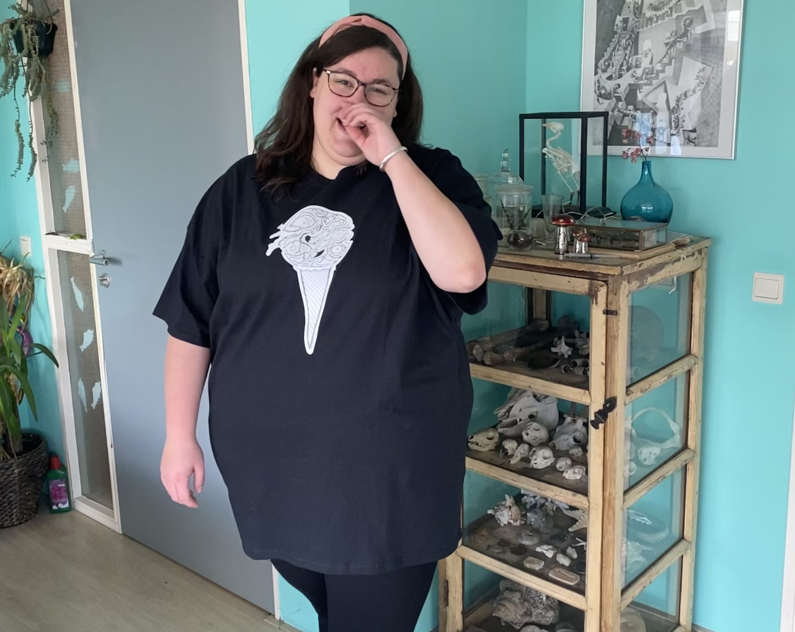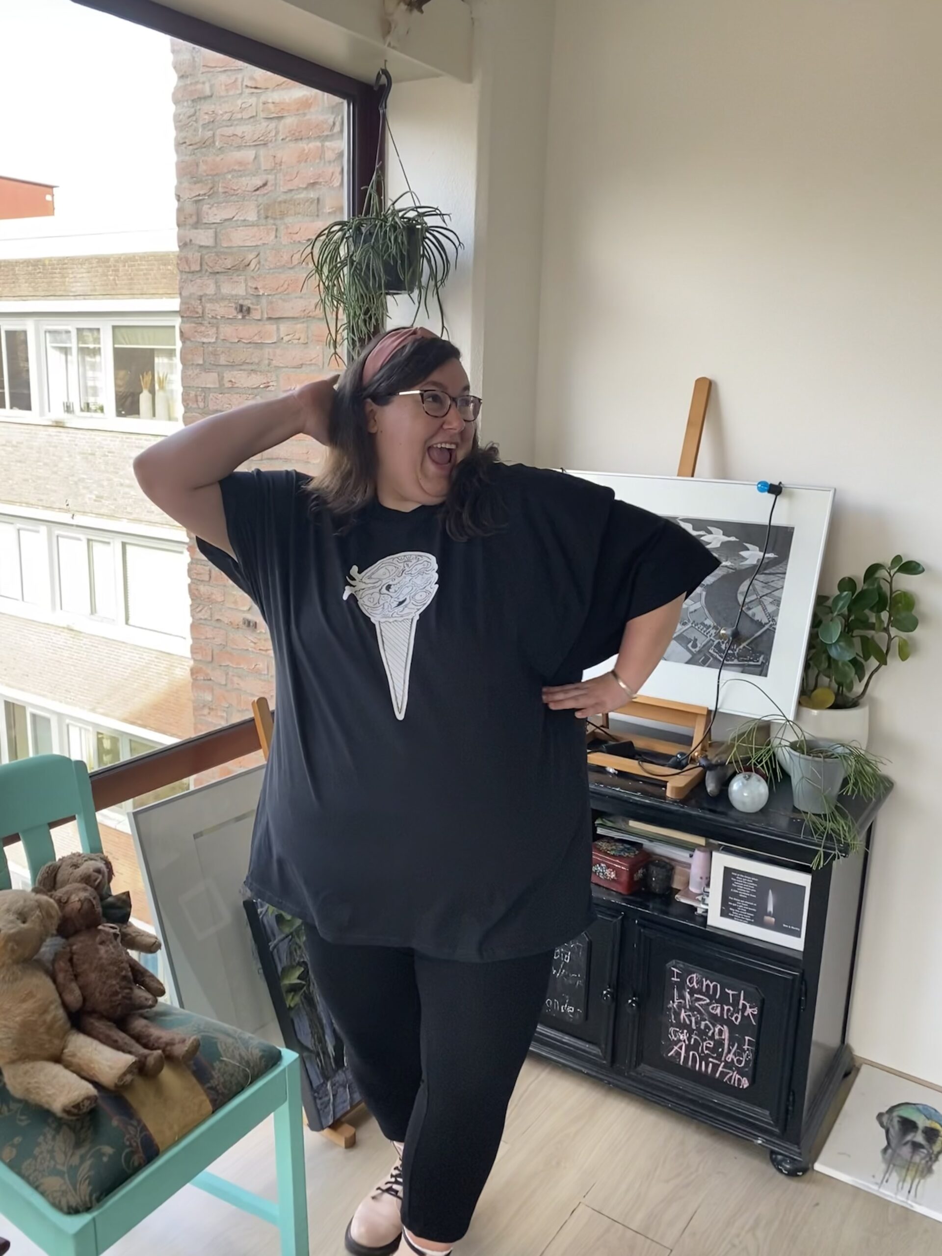 A black shirt with an literally screaming Ice cone printed on the front. The Dutch artist Djethro van der Post made the design.