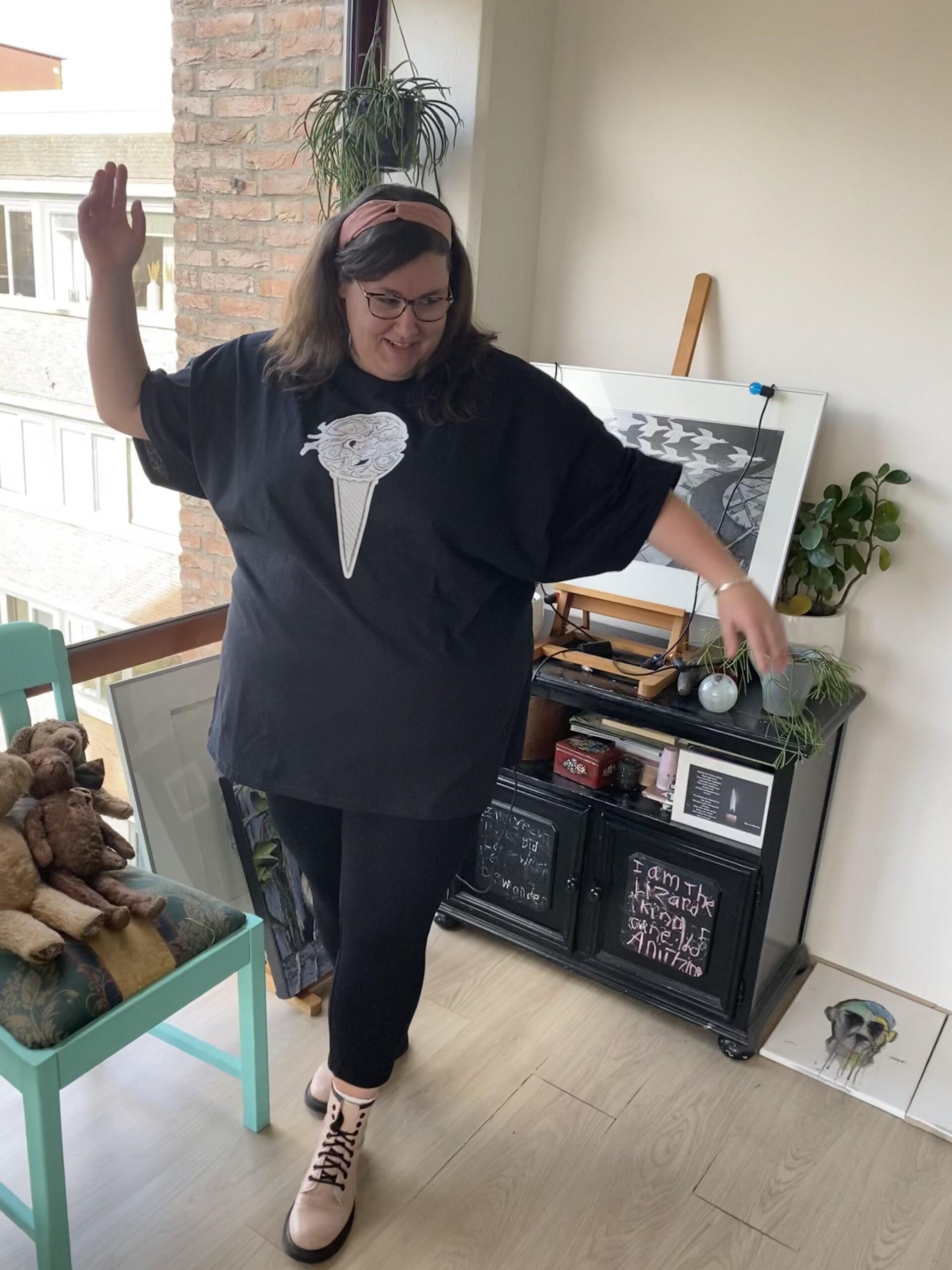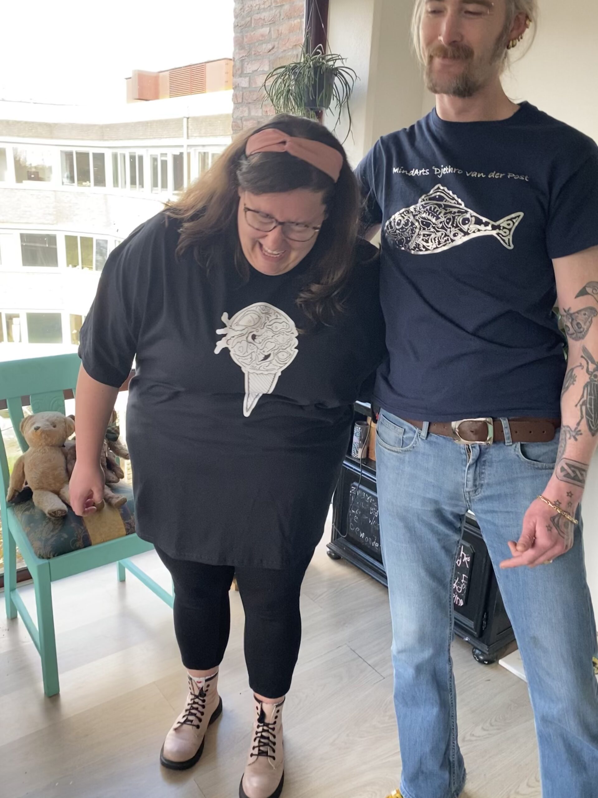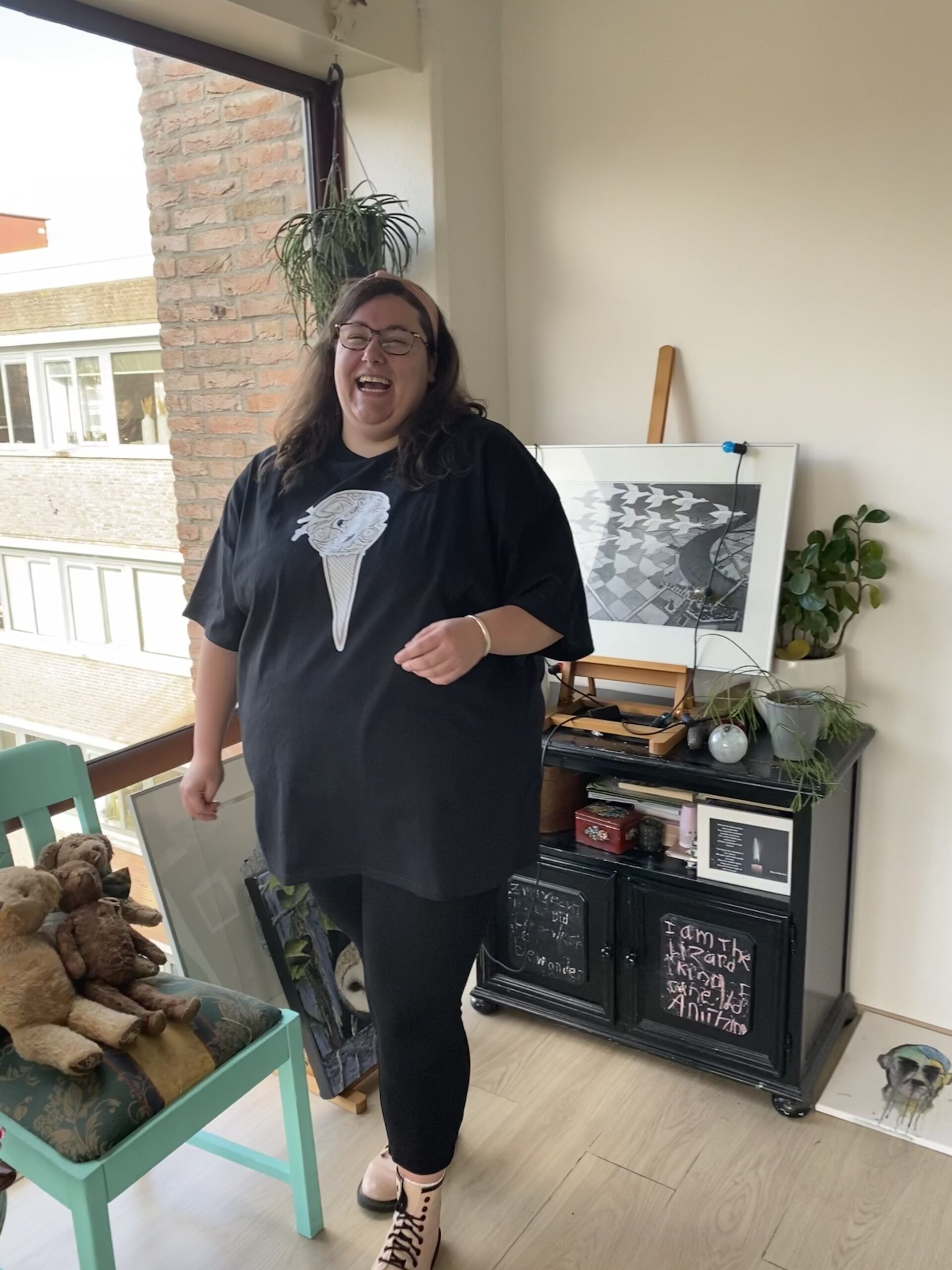 A black shirt with an literally screaming Ice cone printed on the front. The Dutch artist Djethro van der Post made the design.