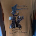 This shirt has a print with a ghostly design. This ghost represents fear. Fear is contagious, if everybody is afraid it’s easy to follow in fear. For us it’s just as important how much contagious Courage is. If you walk together and overcome our fear, we’ll grow together and give each other courage.