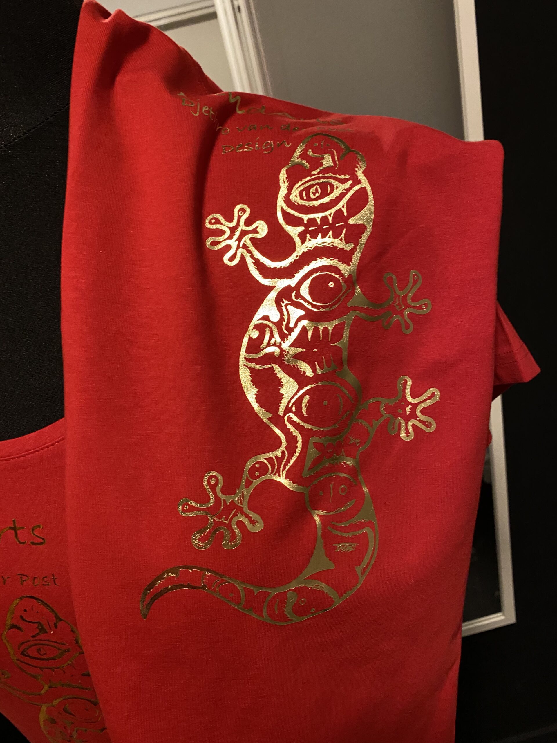 A Gekko-shirt. A Unique and rather recognisable Djethro van der Post design. Nature is very inspiring for this Dutch artist.