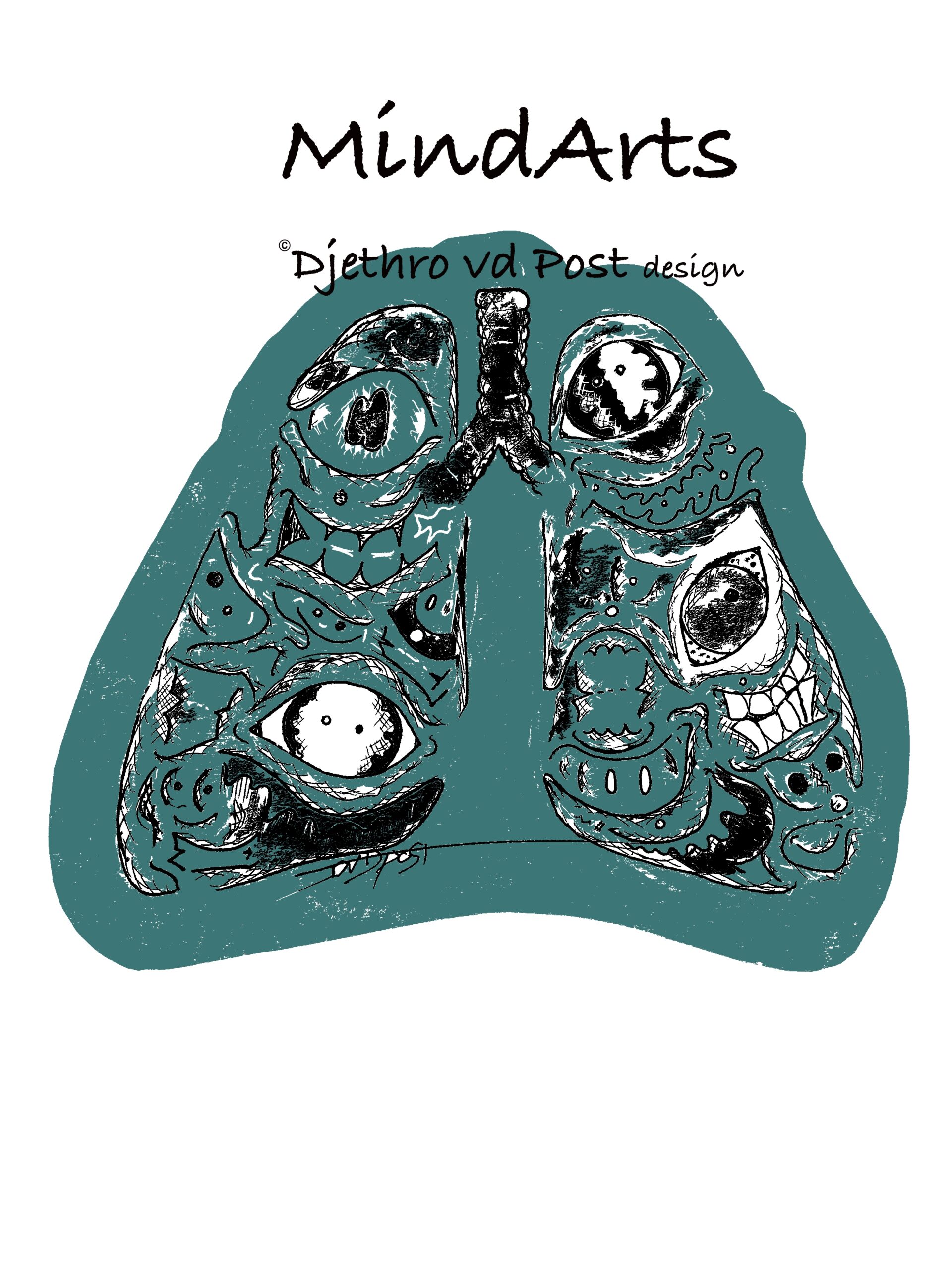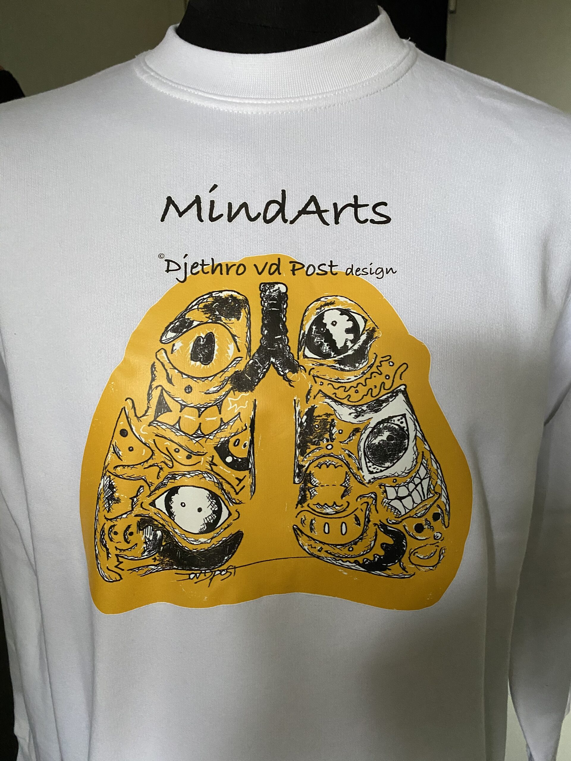 Sweater met een artistieke verbeelding van de longen op een anatomisch juiste plaats. Gecreëerd door de Nederlandse artiest Djethro van der Post. Geïnspireerd op oude medische boeken.