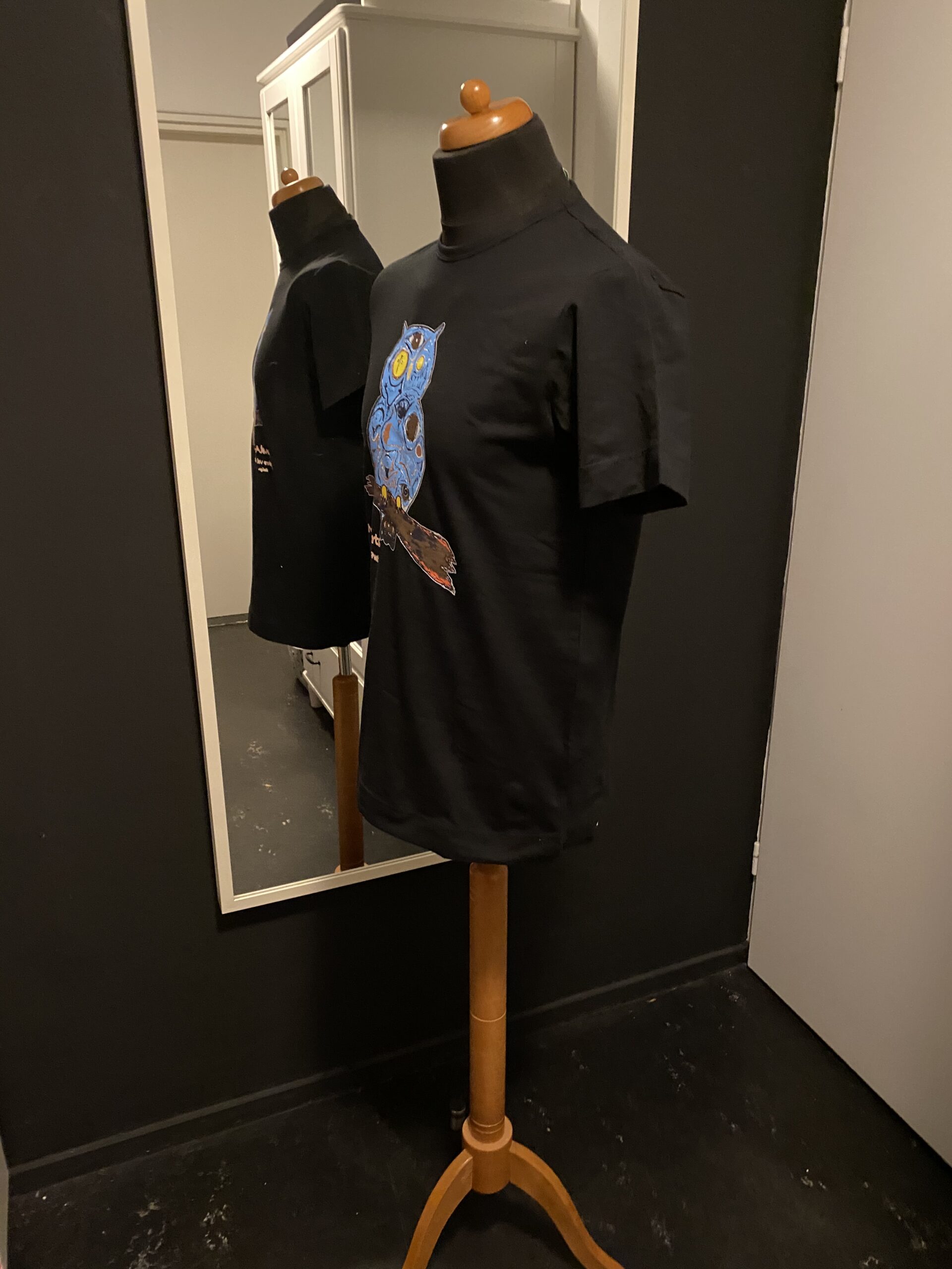 Inspired by reading “Winnie the Pooh”. By A. A. Milne. In which Owl has a masterly part with a doubtful wisdom . A figment of the artist imagination on wearable Arts.