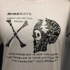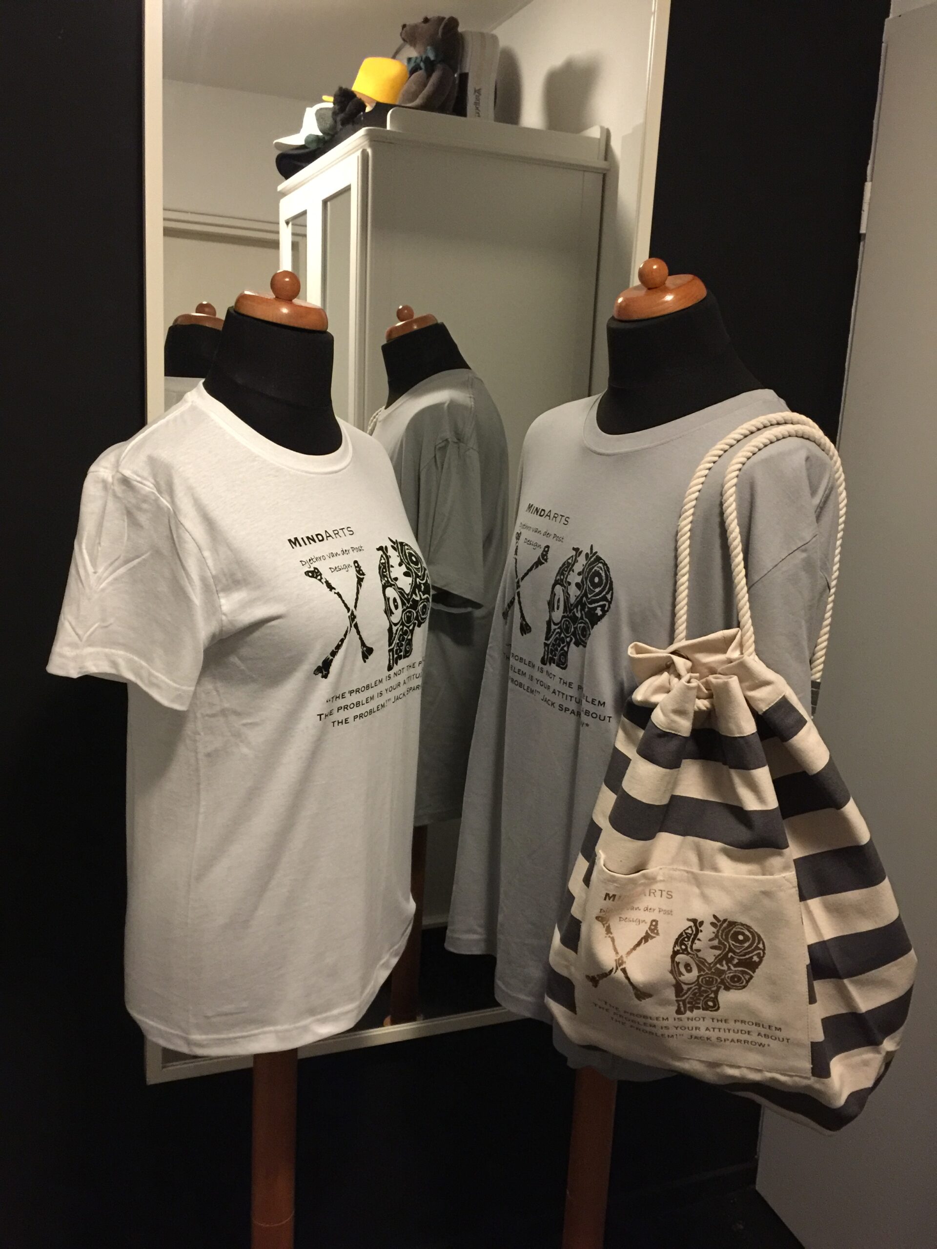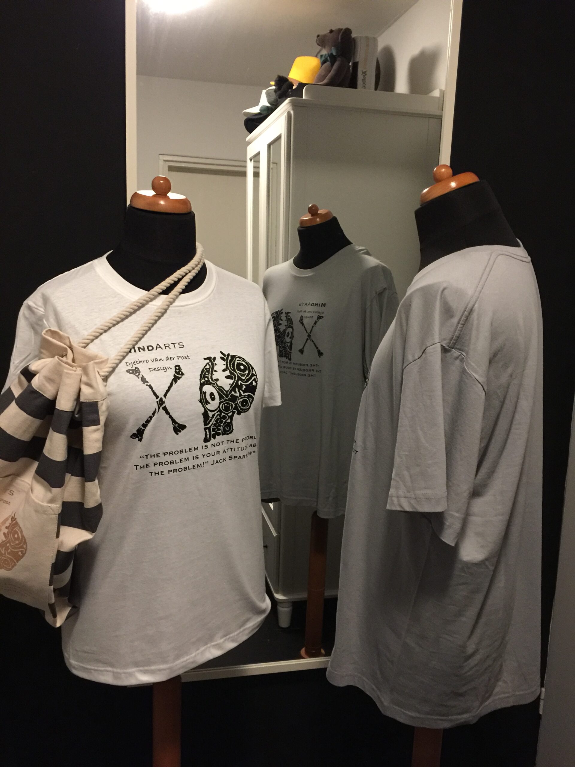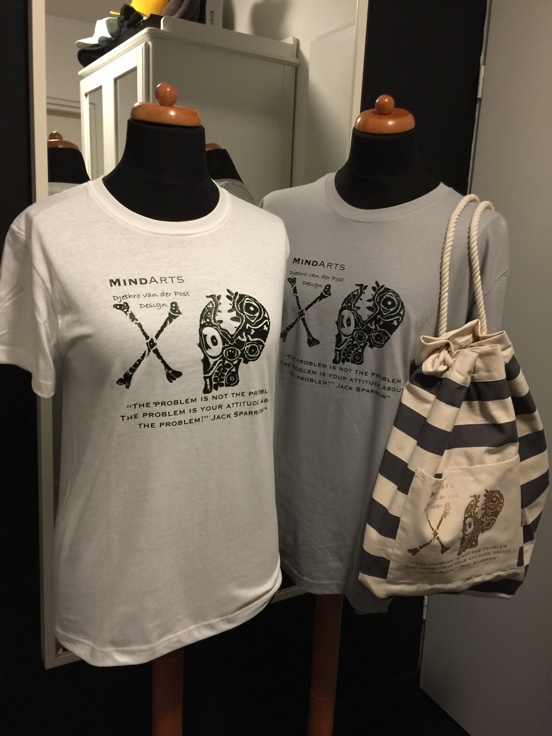 Inspired by the stories Treasure Island and Pirates of the Caribbean, Djethro van der Post made a Pirate design in his recognisable style. Especially the colourful words from Captain Jack Sparrow triggered many thoughts and ideas. An enlightening quote for readers. Printed in treasury black. Ahoy… Don’t forget searching for truest treasures in life. And we can tell you “ Not all treasures are Gold and Silver….”